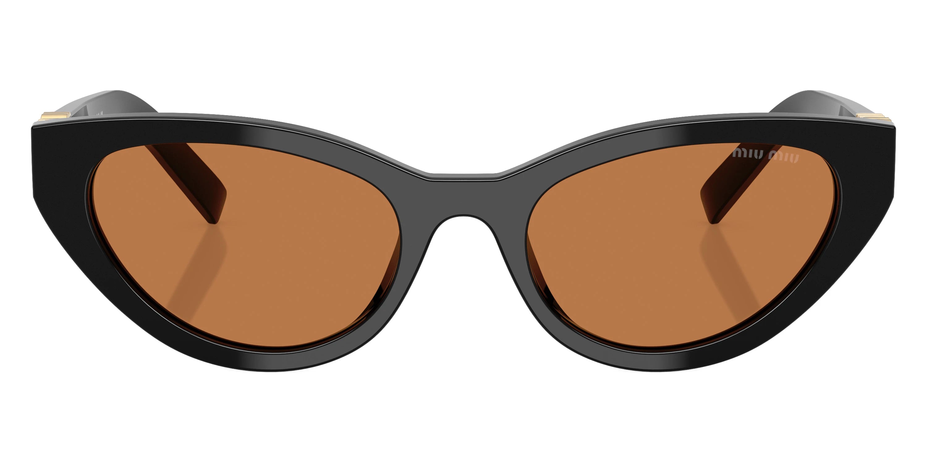 Logo MU A04S Sunglasses by Miu Miu. The butterfly shape design feature a full rim acetate and metal frame. This model is available in five different color combinations and sizes. Sunglasses Miu Miu, like clothing and other accessories, are aimed at a daring young generation. Being less expensive than products of its parent company, Prada, however, Miu Miu's frames are made of high quality material. And if it means something for you: sunglasses for both companies are made of eco-friendly organic plastic. Under the brand's name you will find a great variety of designs, extravagant colors, elegant feminine shapes and comfortable fit which ideally match your free and youthful image.