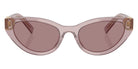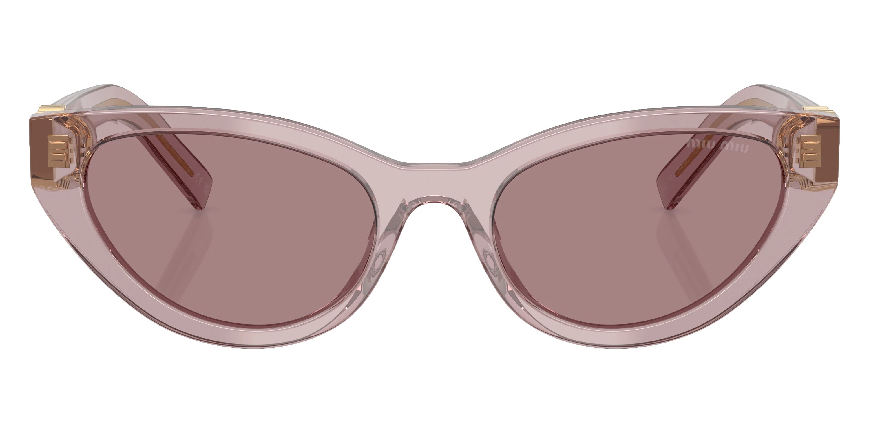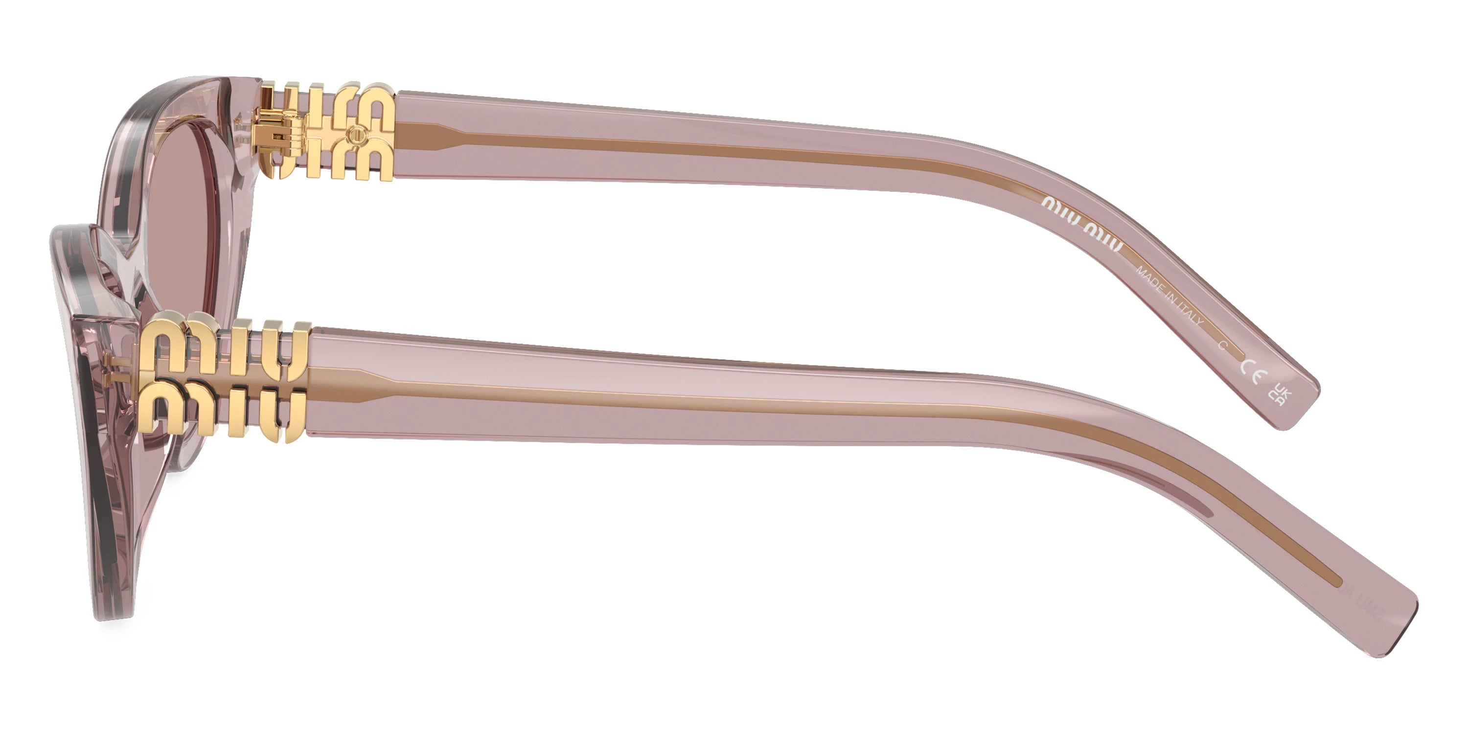 Mauve Transparent (12W20I) Sunglasses with Light Purple Brown lenses (Logo MU A04S 12W20I 54) by Miu Miu. Size: 54-20-140, Shape: Butterfly, Material: Acetate and Metal.