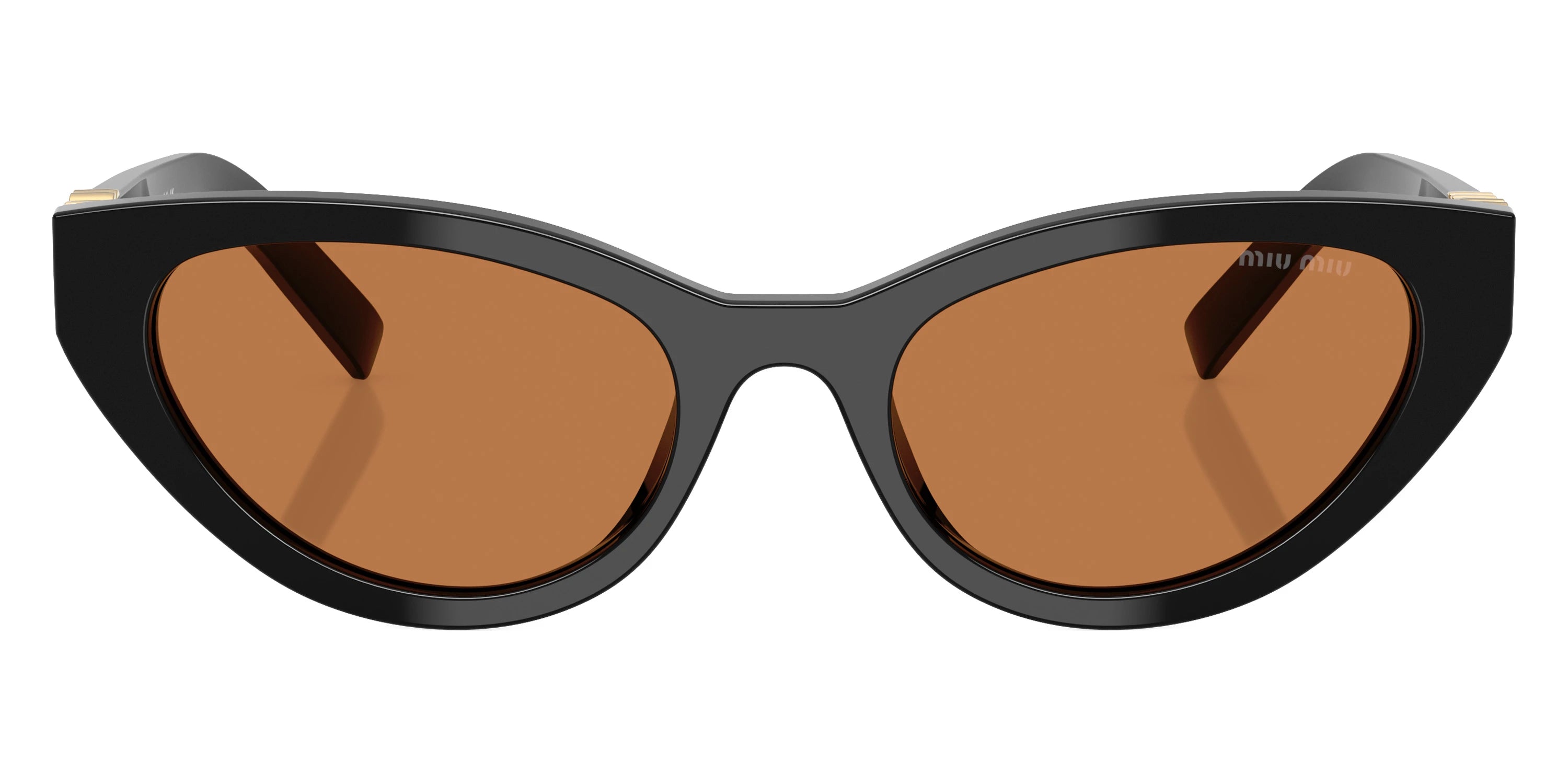 Black (16K10I) Sunglasses with Brown lenses (Logo MU A04SF 16K10I 54) by Miu Miu. Size: 54-20-140, Shape: Butterfly, Material: Acetate and Metal.