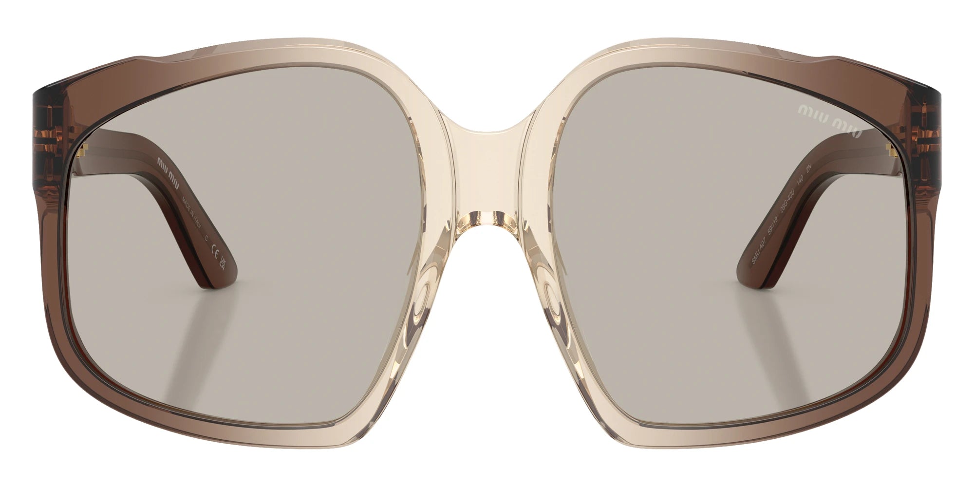 MU A07S Sunglasses by Miu Miu. The irregular shape design feature a full rim acetate frame. This model is available in four different color combinations and sizes. Sunglasses Miu Miu, like clothing and other accessories, are aimed at a daring young generation. Being less expensive than products of its parent company, Prada, however, Miu Miu's frames are made of high quality material. And if it means something for you: sunglasses for both companies are made of eco-friendly organic plastic. Under the brand's name you will find a great variety of designs, extravagant colors, elegant feminine shapes and comfortable fit which ideally match your free and youthful image.