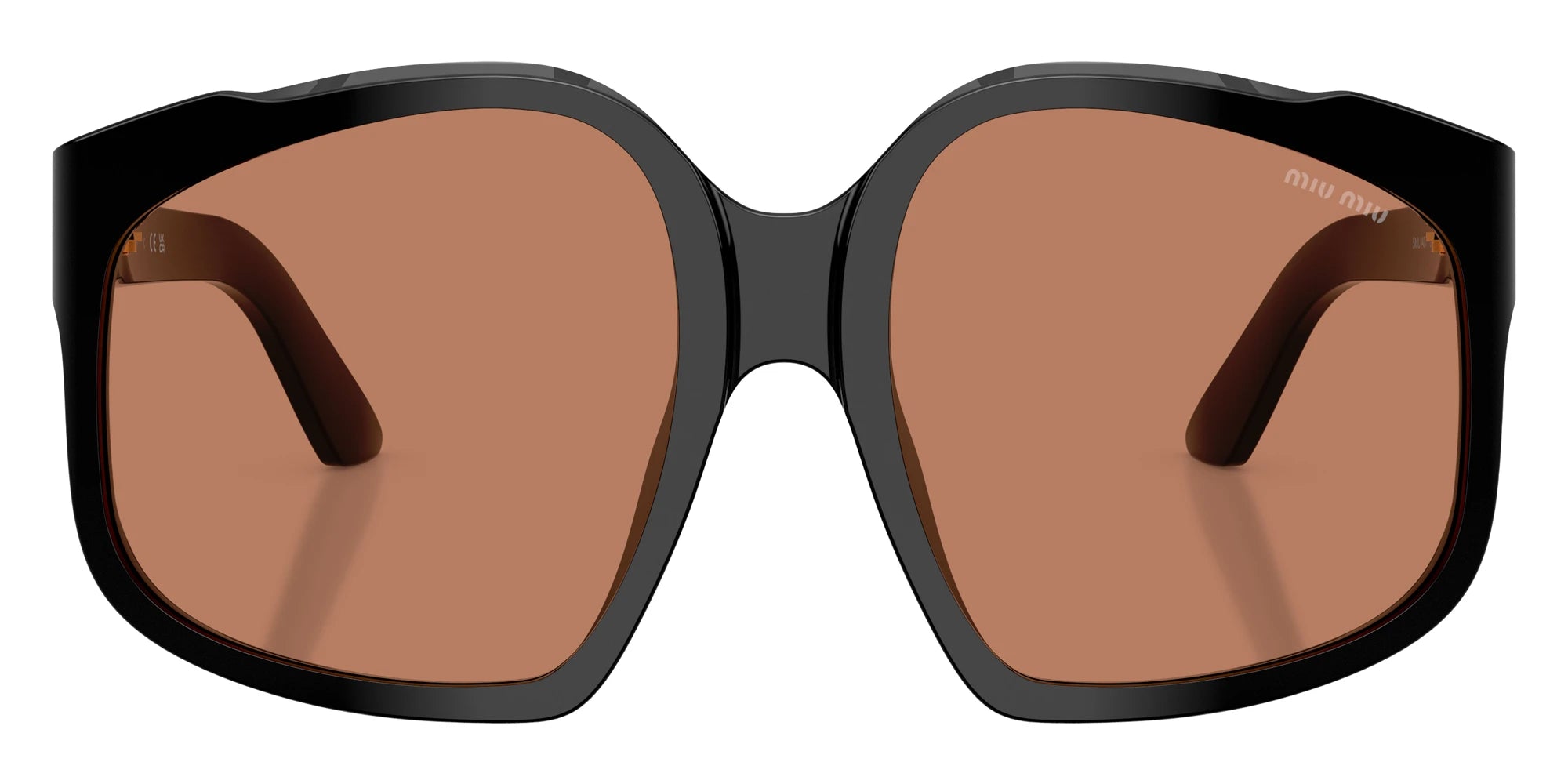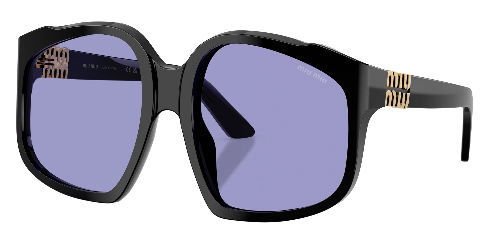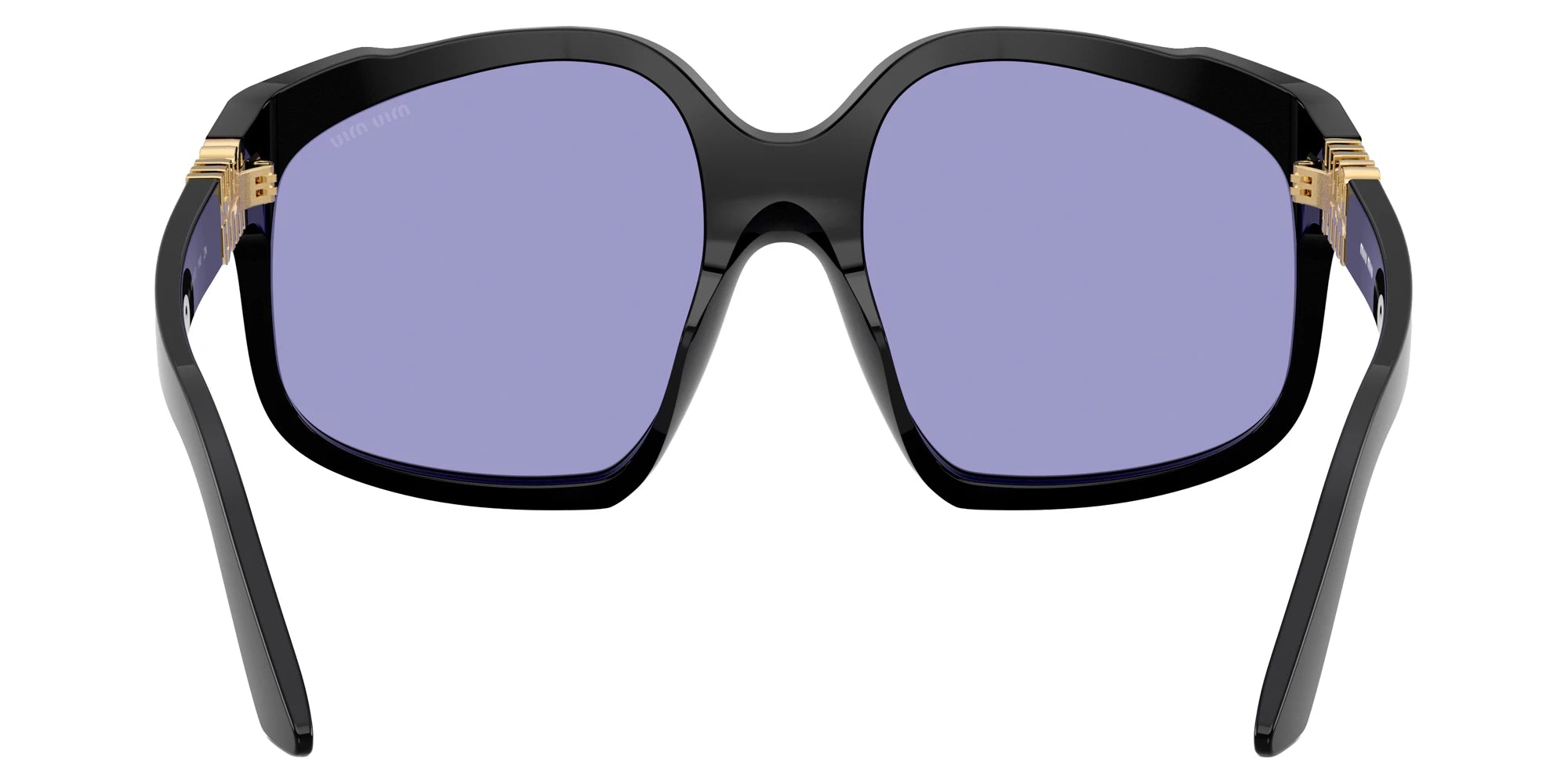 Black (16K01O) Sunglasses with Violet lenses (MU A07S 16K01O 59) by Miu Miu. Size: 59-19-140, Shape: Irregular, Material: Acetate.