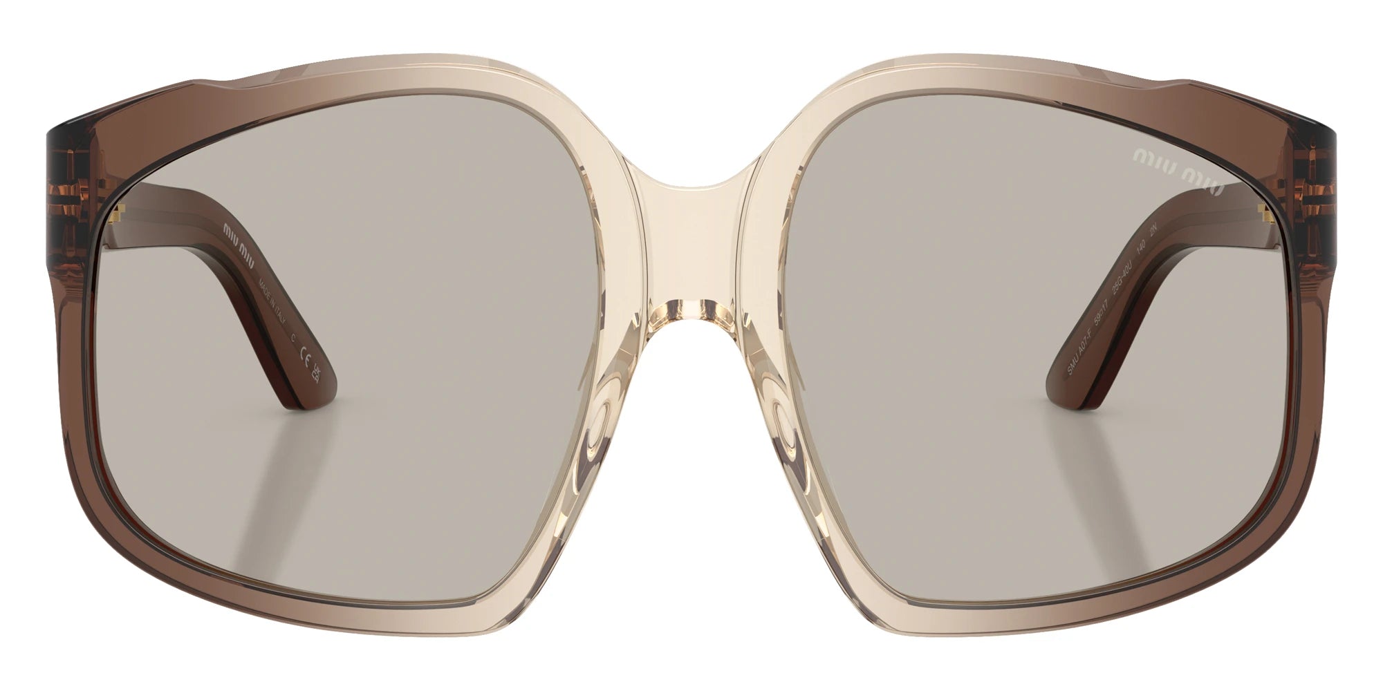 Brown Gradient (25G40U) Sunglasses with Light Brown lenses (MU A07SF 25G40U 59) by Miu Miu. Size: 59-17-140, Shape: Irregular, Material: Acetate.