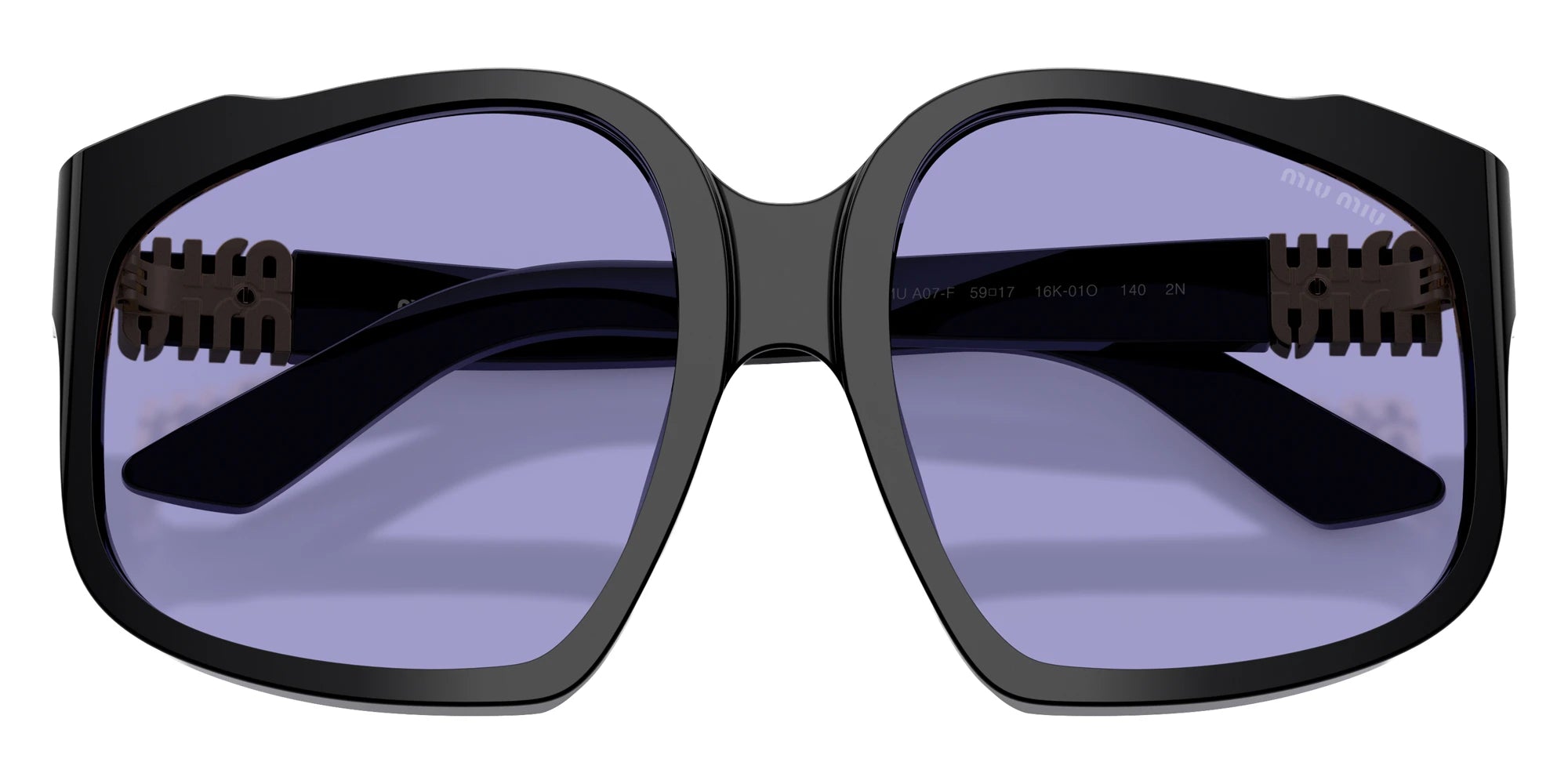 MU A07SF Sunglasses by Miu Miu. The irregular shape design feature a full rim acetate frame. This model is available in four different color combinations and sizes. Sunglasses Miu Miu, like clothing and other accessories, are aimed at a daring young generation. Being less expensive than products of its parent company, Prada, however, Miu Miu's frames are made of high quality material. And if it means something for you: sunglasses for both companies are made of eco-friendly organic plastic. Under the brand's name you will find a great variety of designs, extravagant colors, elegant feminine shapes and comfortable fit which ideally match your free and youthful image.