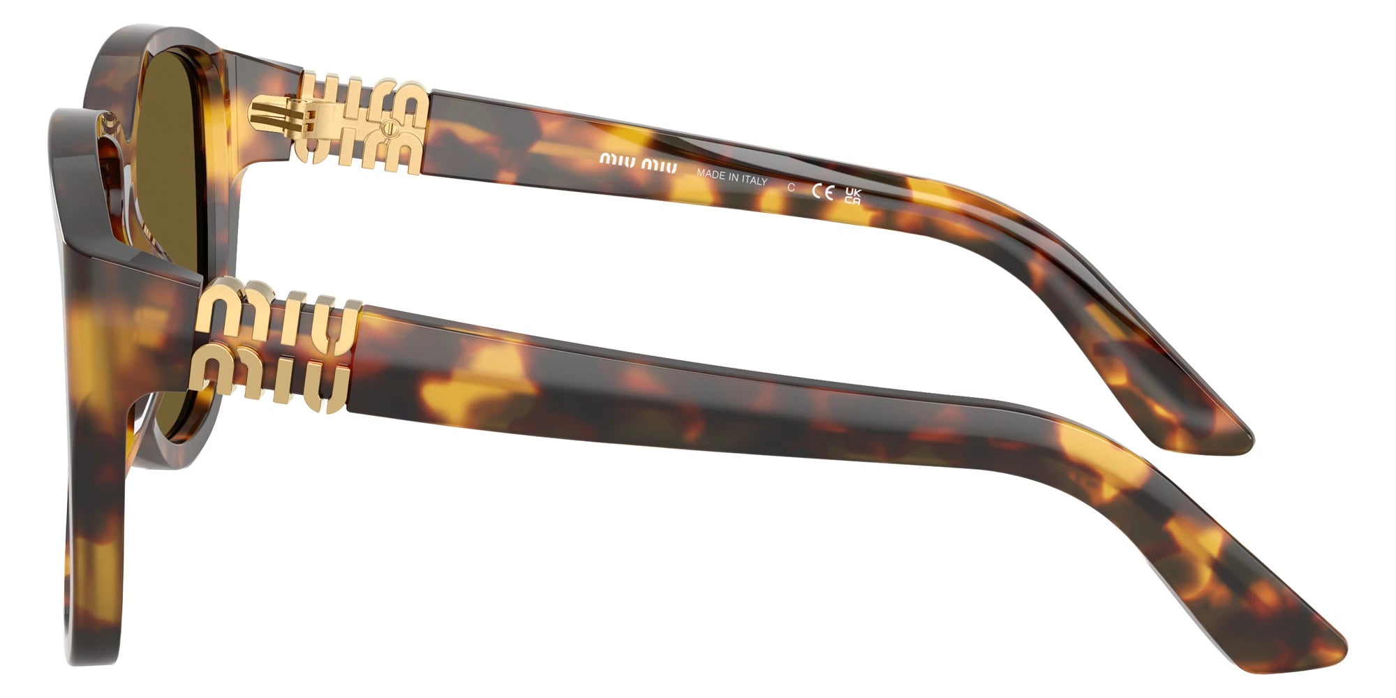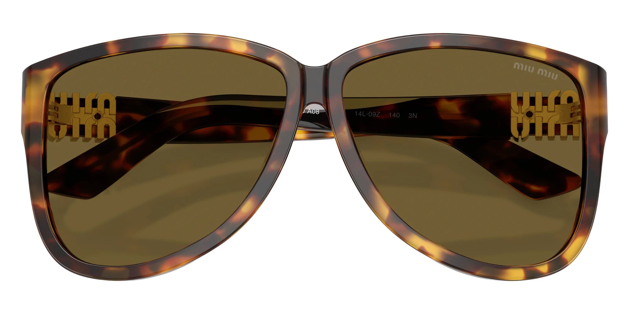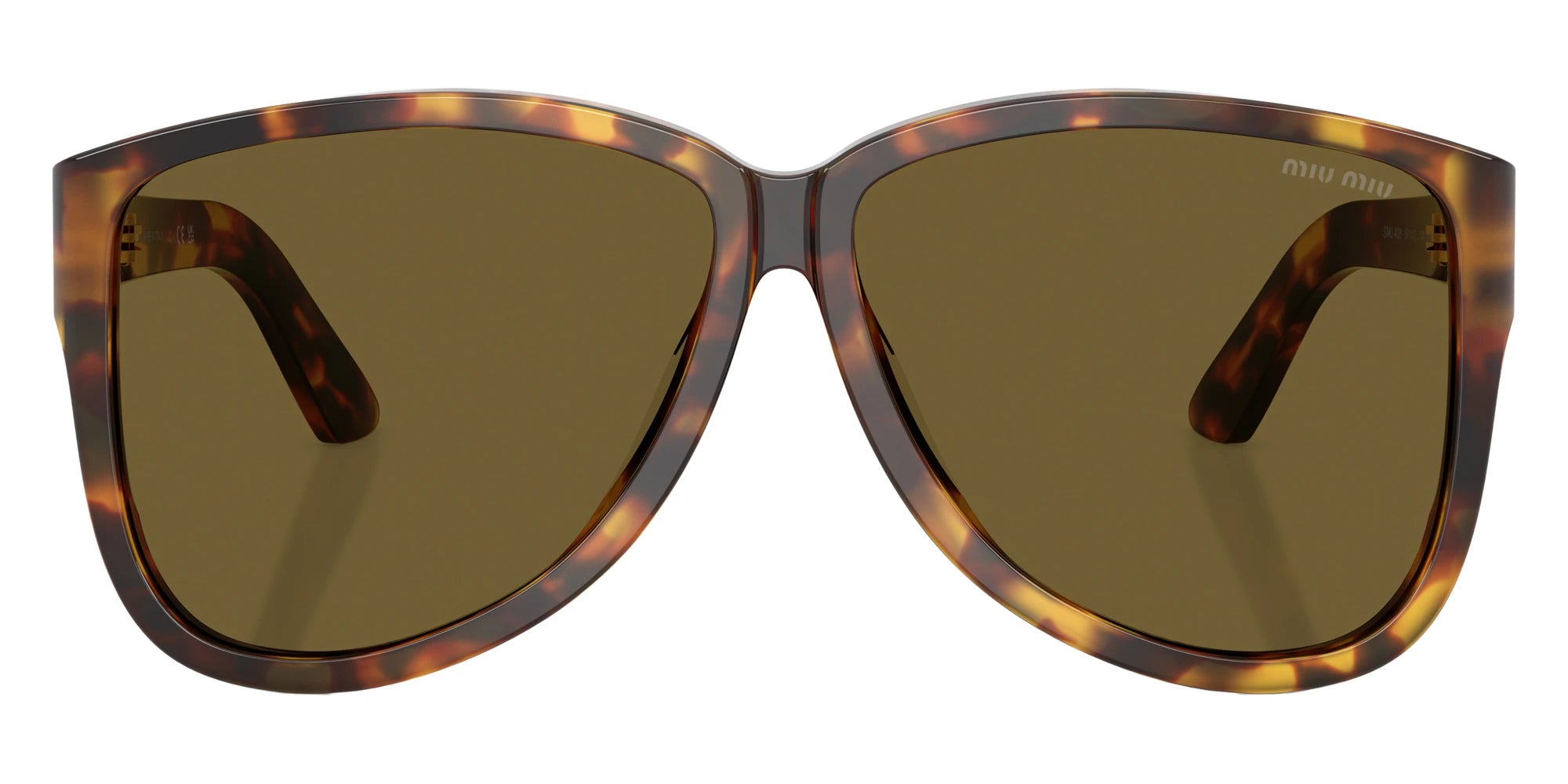 Honey Havana (14L09Z) Sunglasses with Dark Brown lenses (MU A08S 14L09Z 61) by Miu Miu. Size: 61-12-140, Shape: Aviator, Material: Acetate and Metal.
