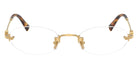 The brand's eyewear collections include futuristic frames with an abundance of glossy metal elements, sparkles, rhinestones, and even precious stones.