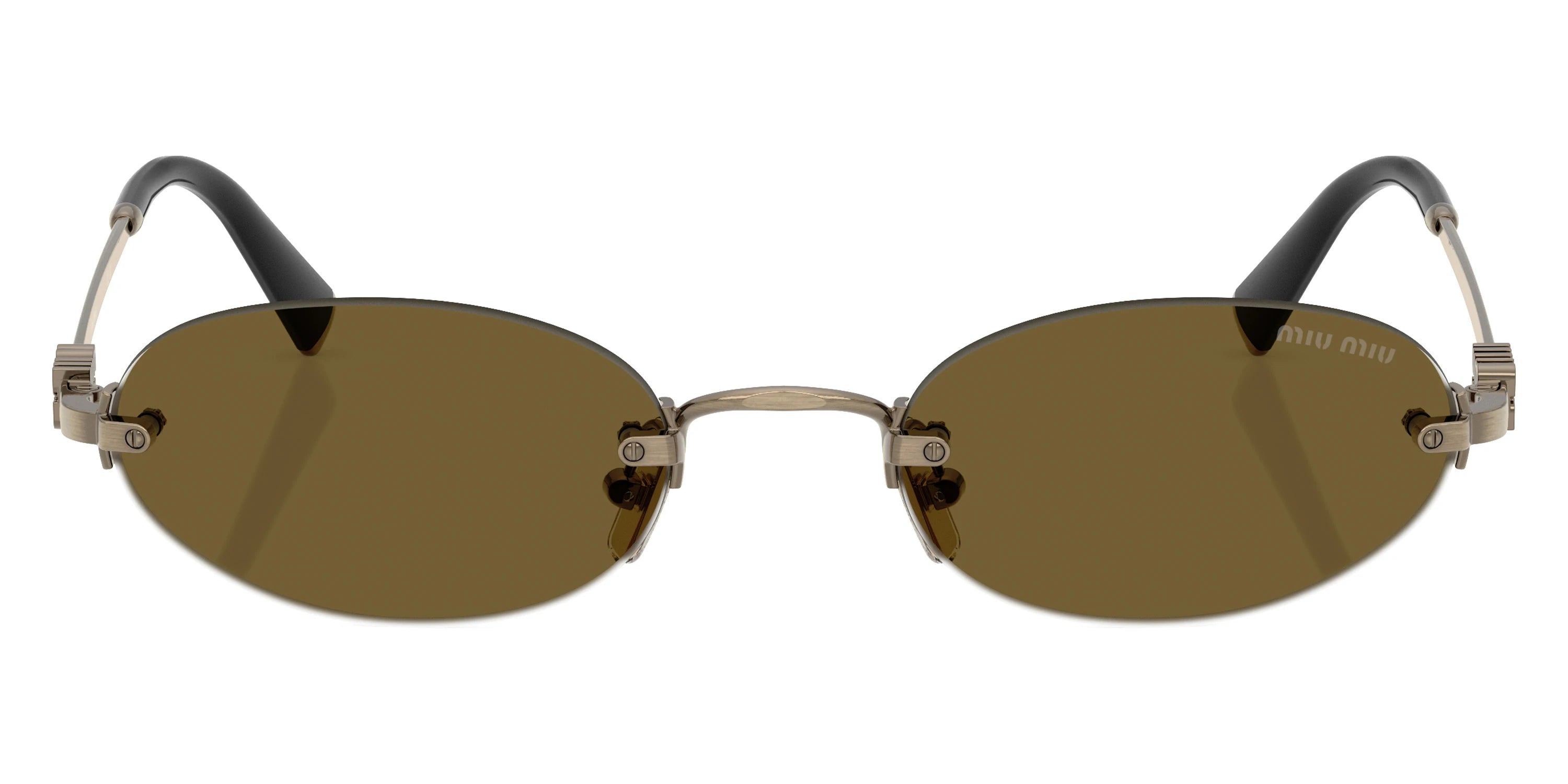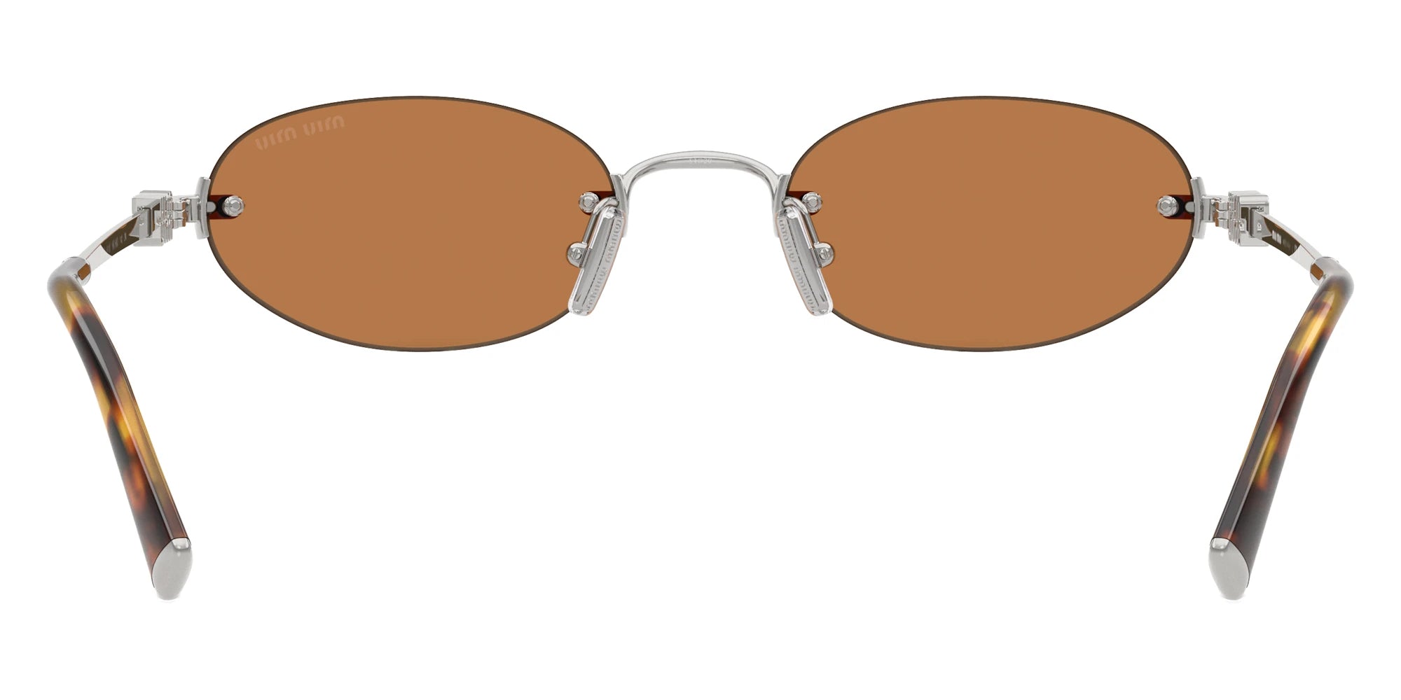 Silver (1BC90Q) Sunglasses with Brown lenses (MU A54S 1BC90Q 51) by Miu Miu. Size: 51-20-140, Shape: Oval, Material: Metal.