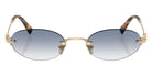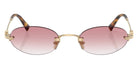 Logo MU A54S Sunglasses by Miu Miu. The oval shape design feature a rimless metal frame. This model is available in five different color combinations and sizes. Sunglasses Miu Miu, like clothing and other accessories, are aimed at a daring young generation. Being less expensive than products of its parent company, Prada, however, Miu Miu's frames are made of high quality material. And if it means something for you: sunglasses for both companies are made of eco-friendly organic plastic. Under the brand's name you will find a great variety of designs, extravagant colors, elegant feminine shapes and comfortable fit which ideally match your free and youthful image.
