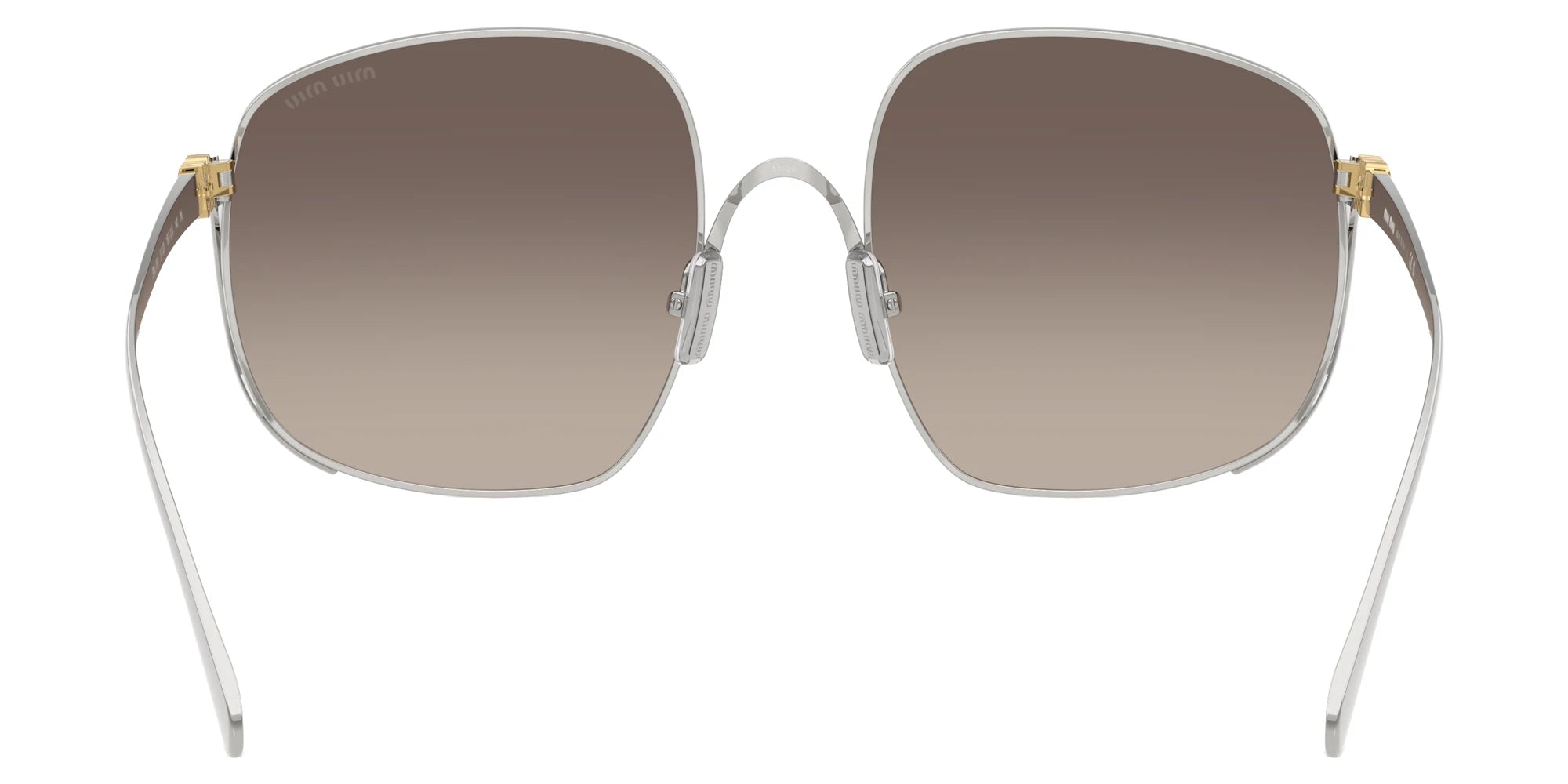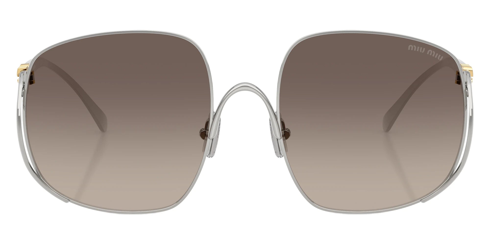 Silver (1BC30S) Sunglasses with Gray Gradient lenses (MU A57S 1BC30S 57) by Miu Miu. Size: 57-20-140, Shape: Square, Material: Metal.