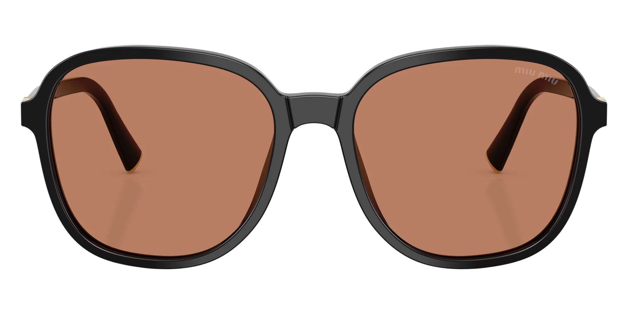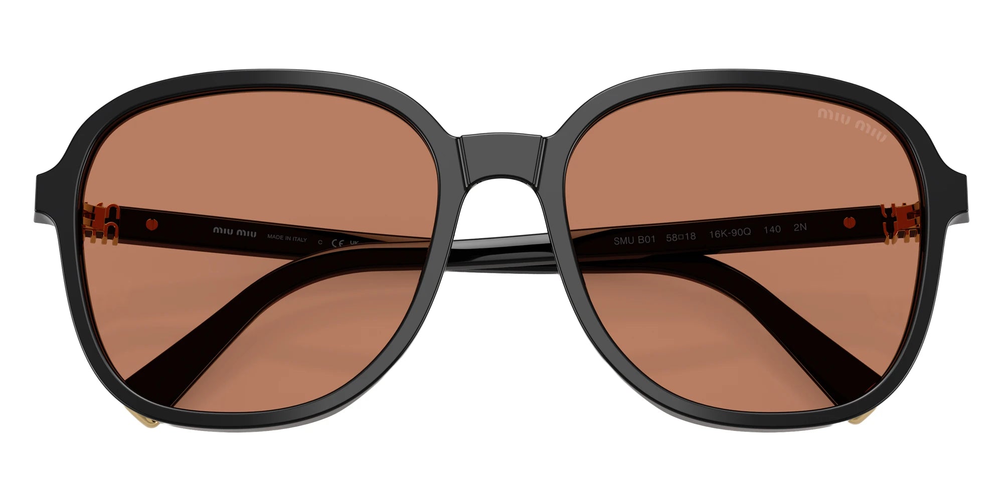 Black (16K90Q) Sunglasses with Brown lenses (MU B01S 16K90Q 58) by Miu Miu. Size: 58-18-140, Shape: Square, Material: Acetate and Metal.