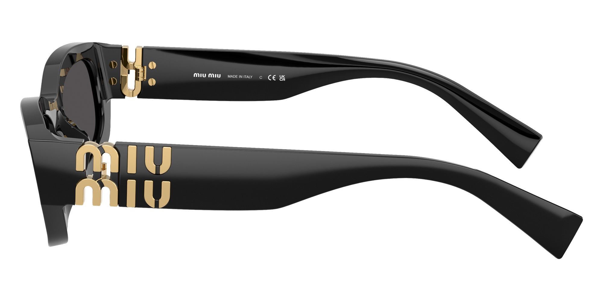 Black (16K08Z) Sunglasses (MU B04SF 16K08Z 53) by Miu Miu. Size: 53-22-135, Shape: Irregular, Material: Acetate and Metal.