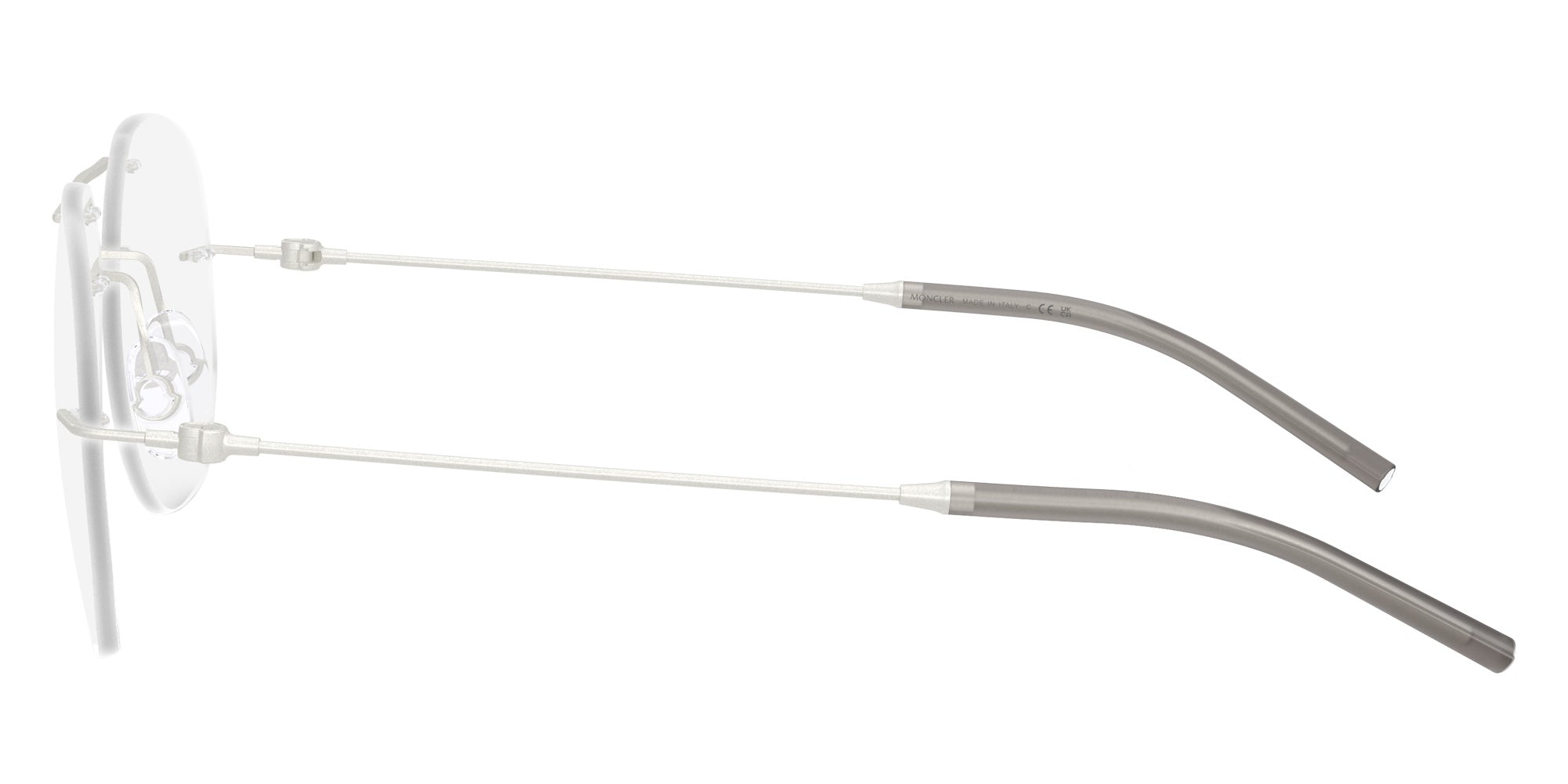 Matte Silver (1004) Eyeglasses (ME1003 1004 55) by Moncler. Size: 55-18-140, Shape: Irregular, Material: Steel.