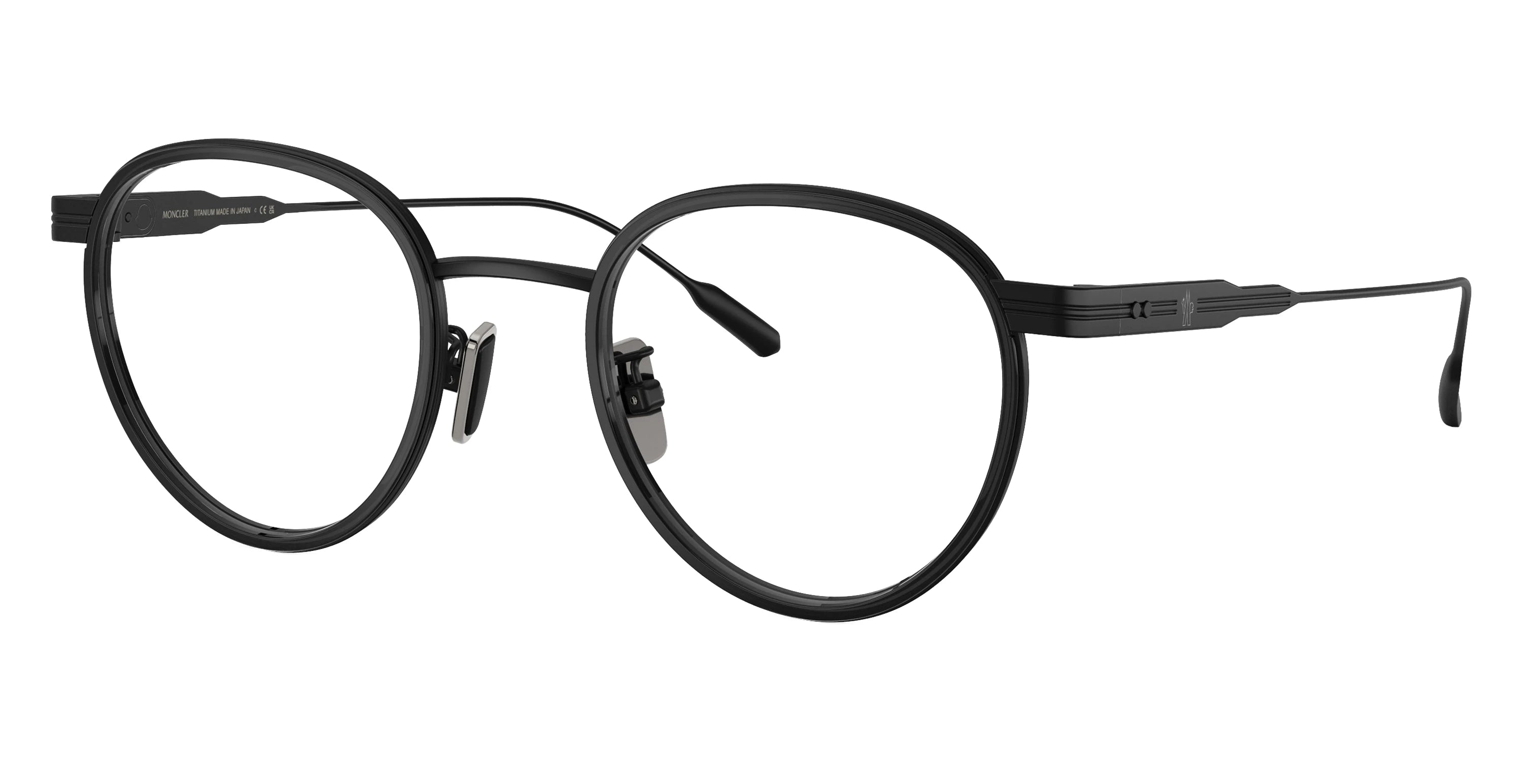 Matte Black (1001) Eyeglasses (ME1006T 1001 49) by Moncler™. Size: 49-22-145, Shape: Round, Material: Titanium.