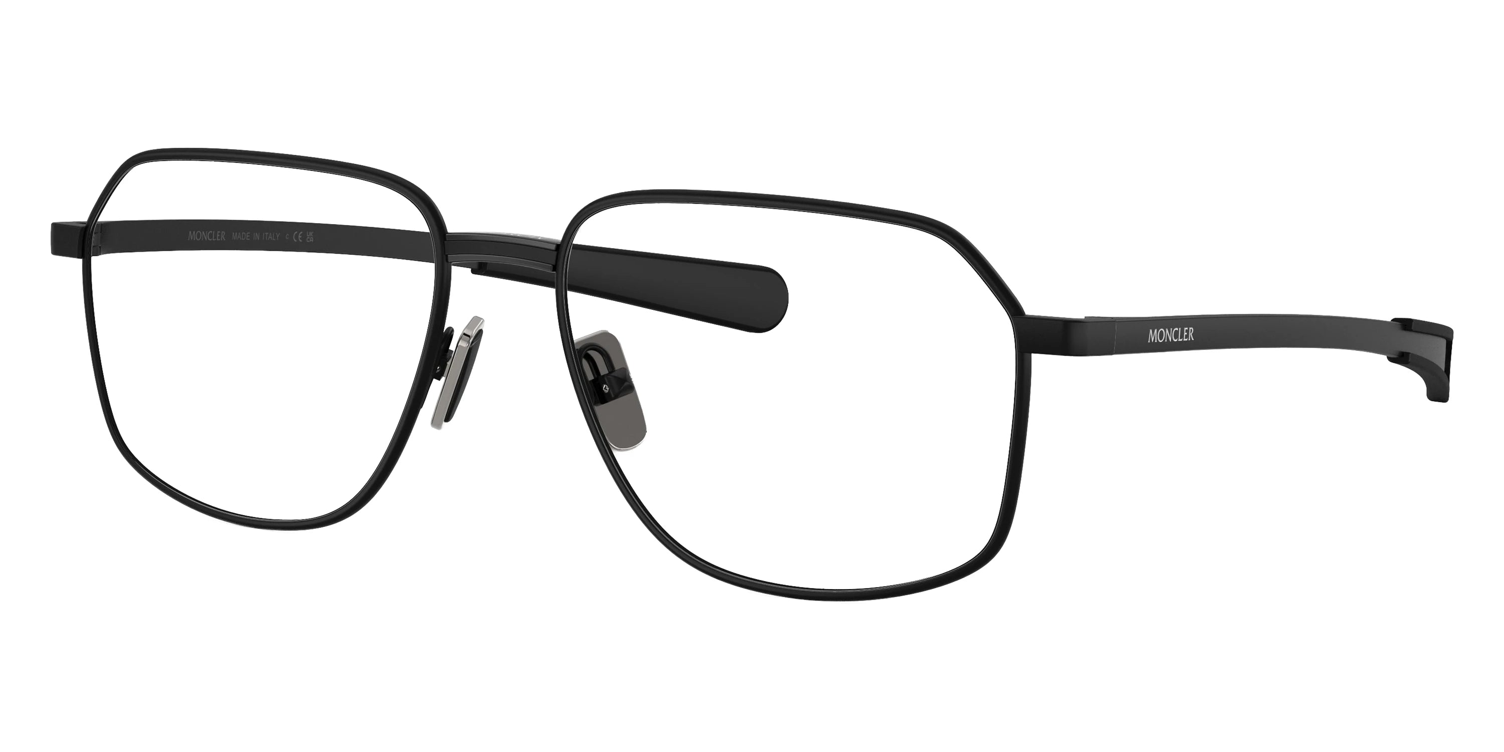 Matte Black (1001) Eyeglasses (ME1010 1001 54) by Moncler™. Size: 54-16-145, Shape: Rectangle, Material: Metal.