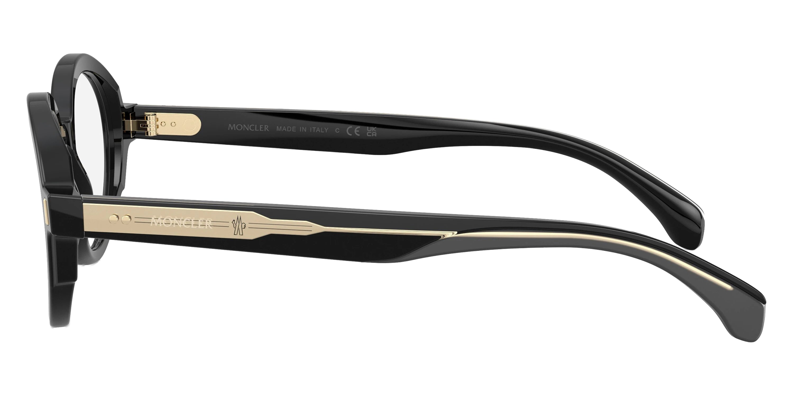 Shiny Black/Crystal (3001) Eyeglasses (ME2005 3001 47) by Moncler™. Size: 47-21-145, Shape: Round, Material: Acetate.