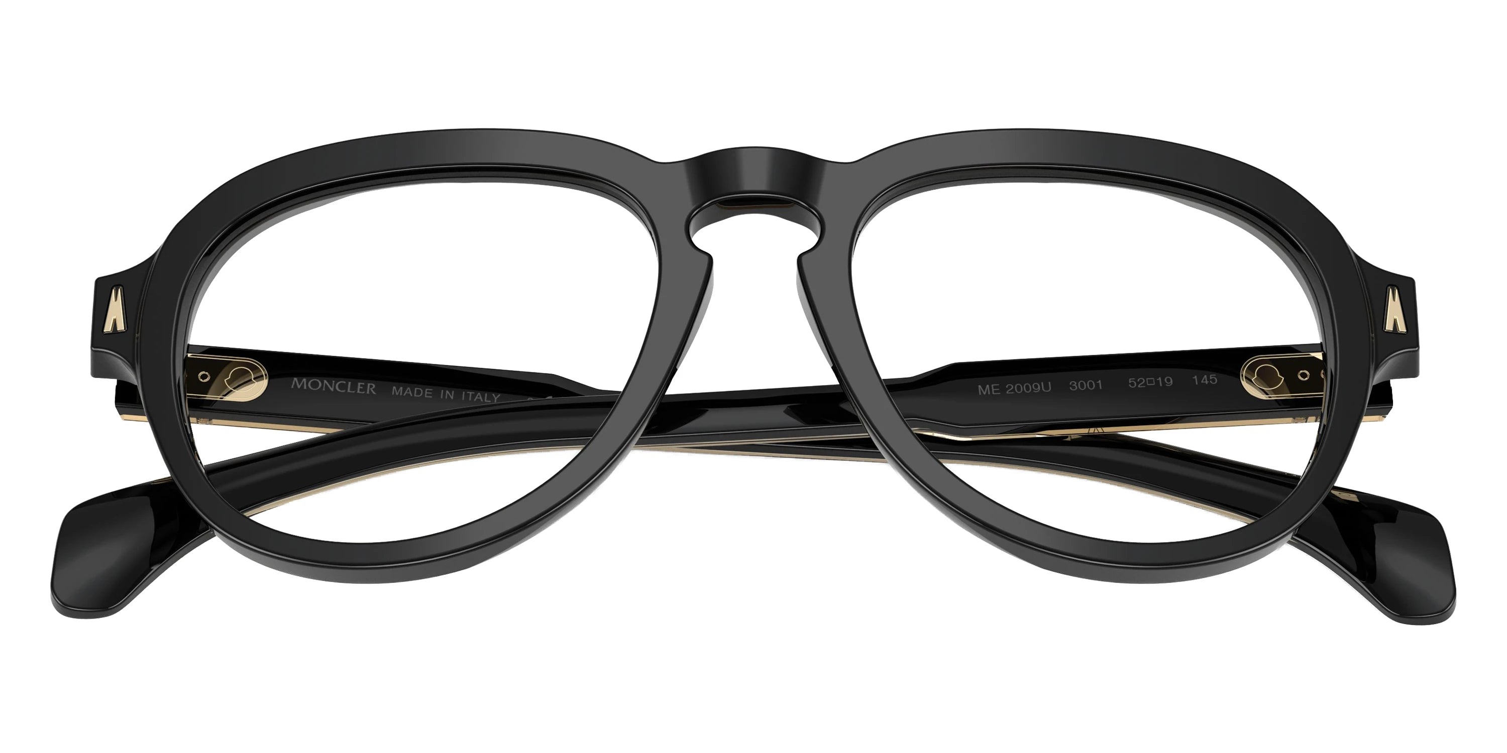 Shiny Black/Crystal (3001) Eyeglasses (ME2009U 3001 50) by Moncler™. Size: 50-19-145, Shape: Aviator, Material: Acetate.