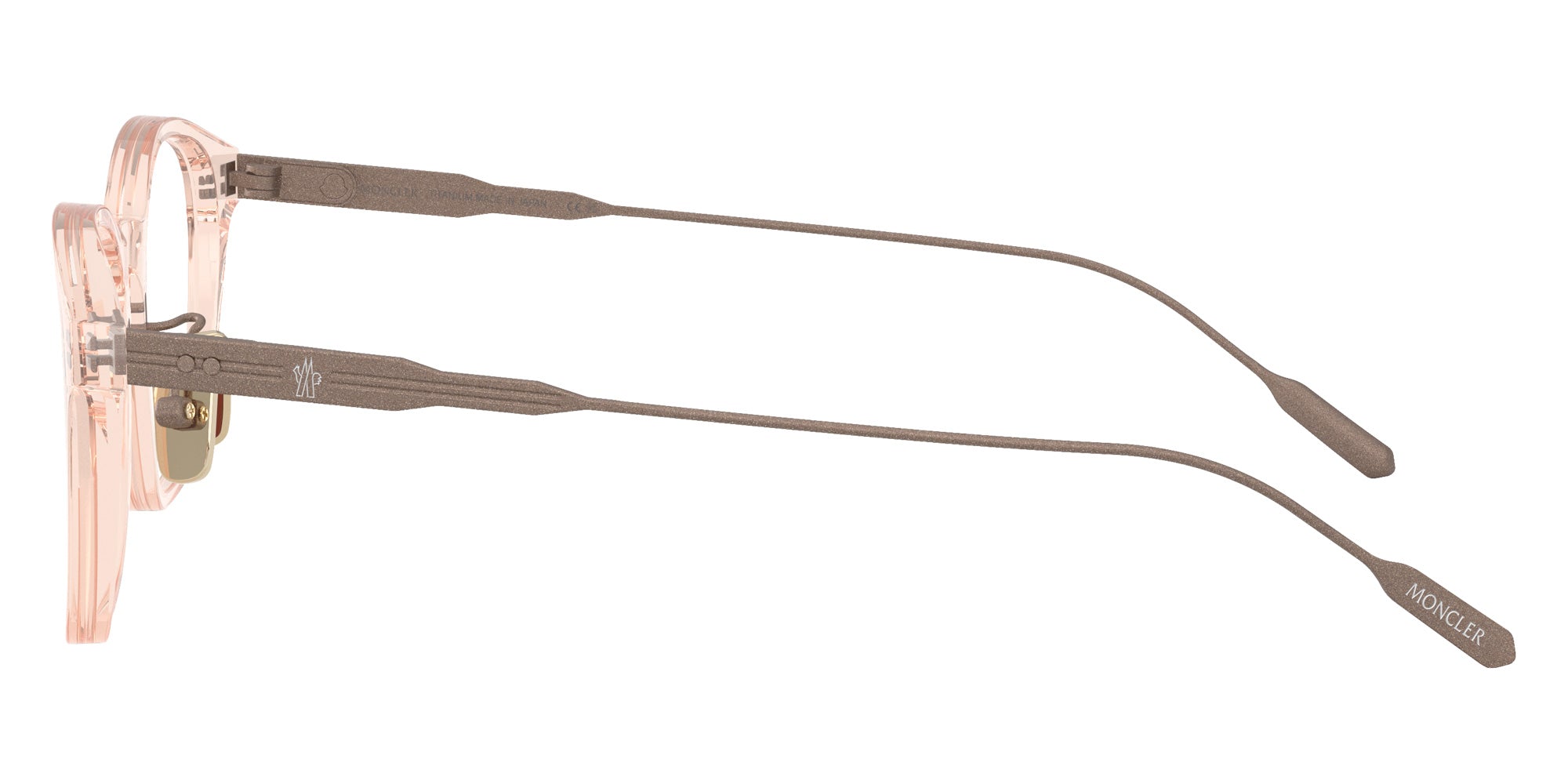 Transparent Peach (3040) Eyeglasses (ME2030D 3040 49) by Moncler. Size: 49-21-145, Shape: Wayfarer, Material: Acetate and Titanium.