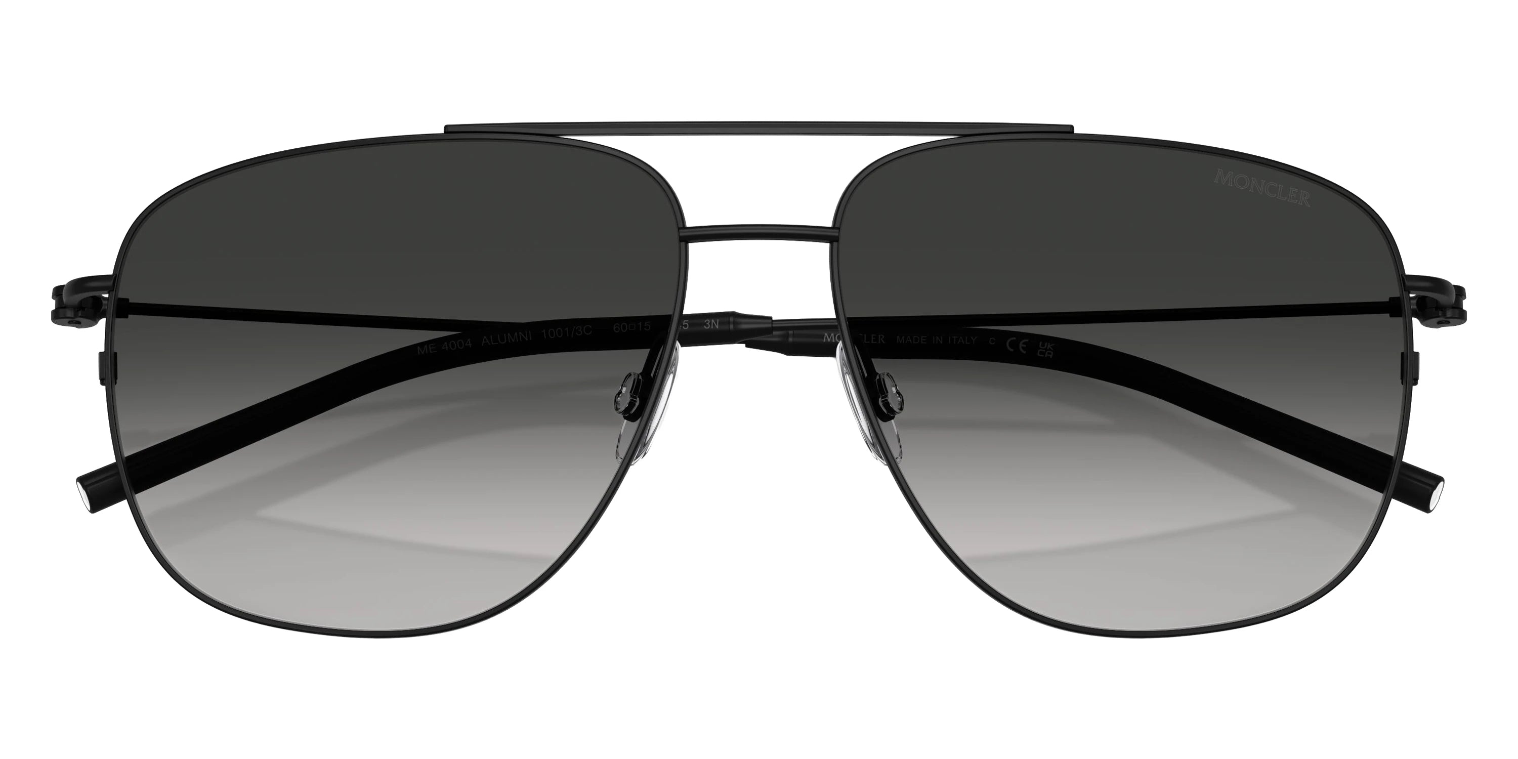 Matte Black (10013C) Sunglasses with Light Gray Gradient Black lenses (ME4004 Alumni 10013C 57) by Moncler™. Size: 57-15-145, Shape: Aviator, Material: Steel.