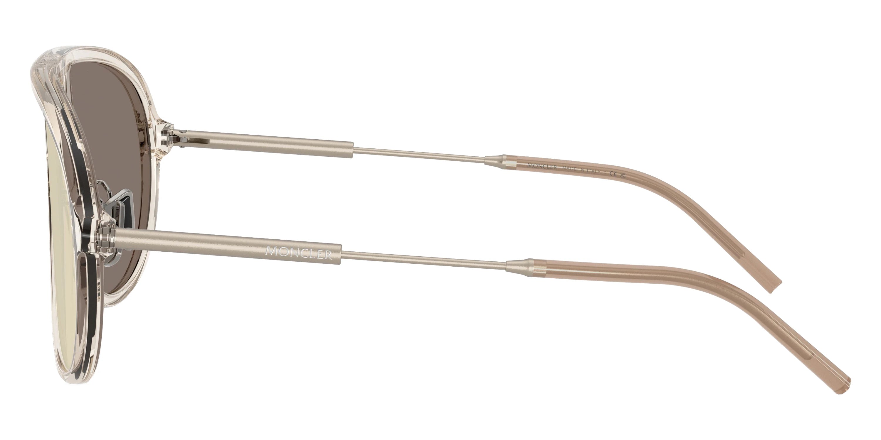 Transparent Shiny Butter/Matte Bronze (30035A) Sunglasses with Mirrored Brown Gold lenses (ME6009 GLYDE 30035A 61) by Moncler™. Size: 61-12-145, Shape: Aviator, Material: Acetate and Metal.