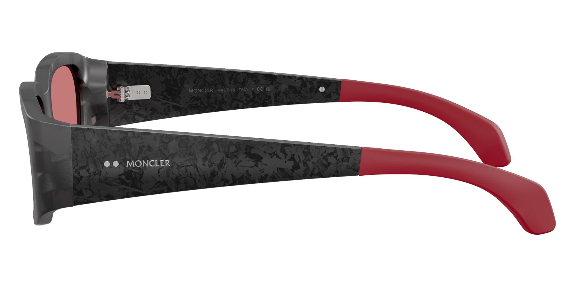 Matte Dark Regolith (303275) Sunglasses with Red Solid lenses (ME6014U Lumin 303275 55) by Moncler™. Size: 55-17-150, Shape: Rectangle, Material: Acetate and Carbon Fiber.