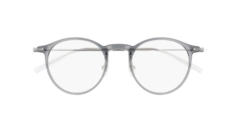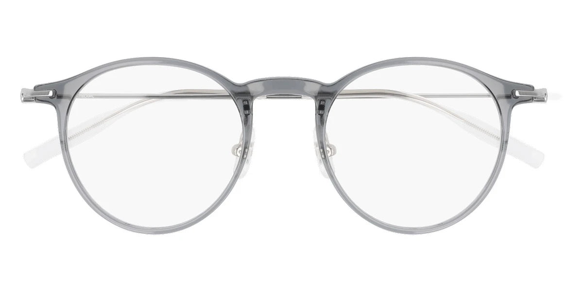 Gray/Silver (001) Eyeglasses (MB0099O 001 48) by Montblanc™. Size: 48-21-145, Shape: Round, Material: Plastic and Metal.