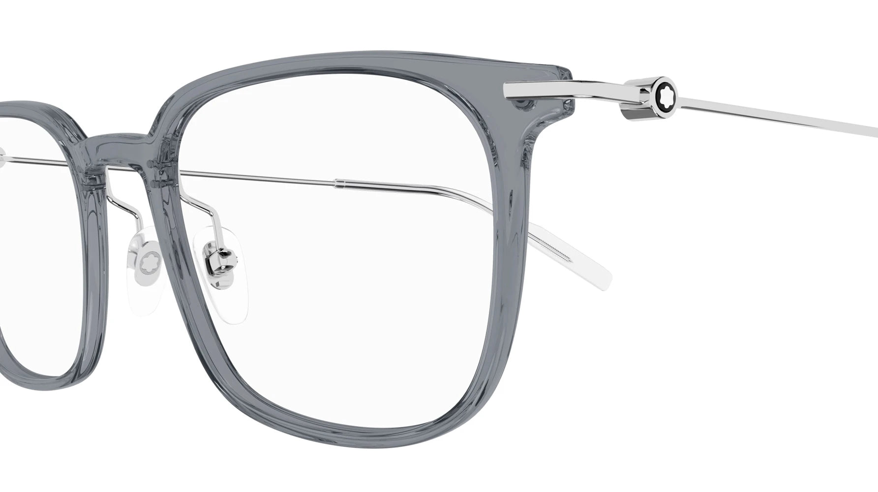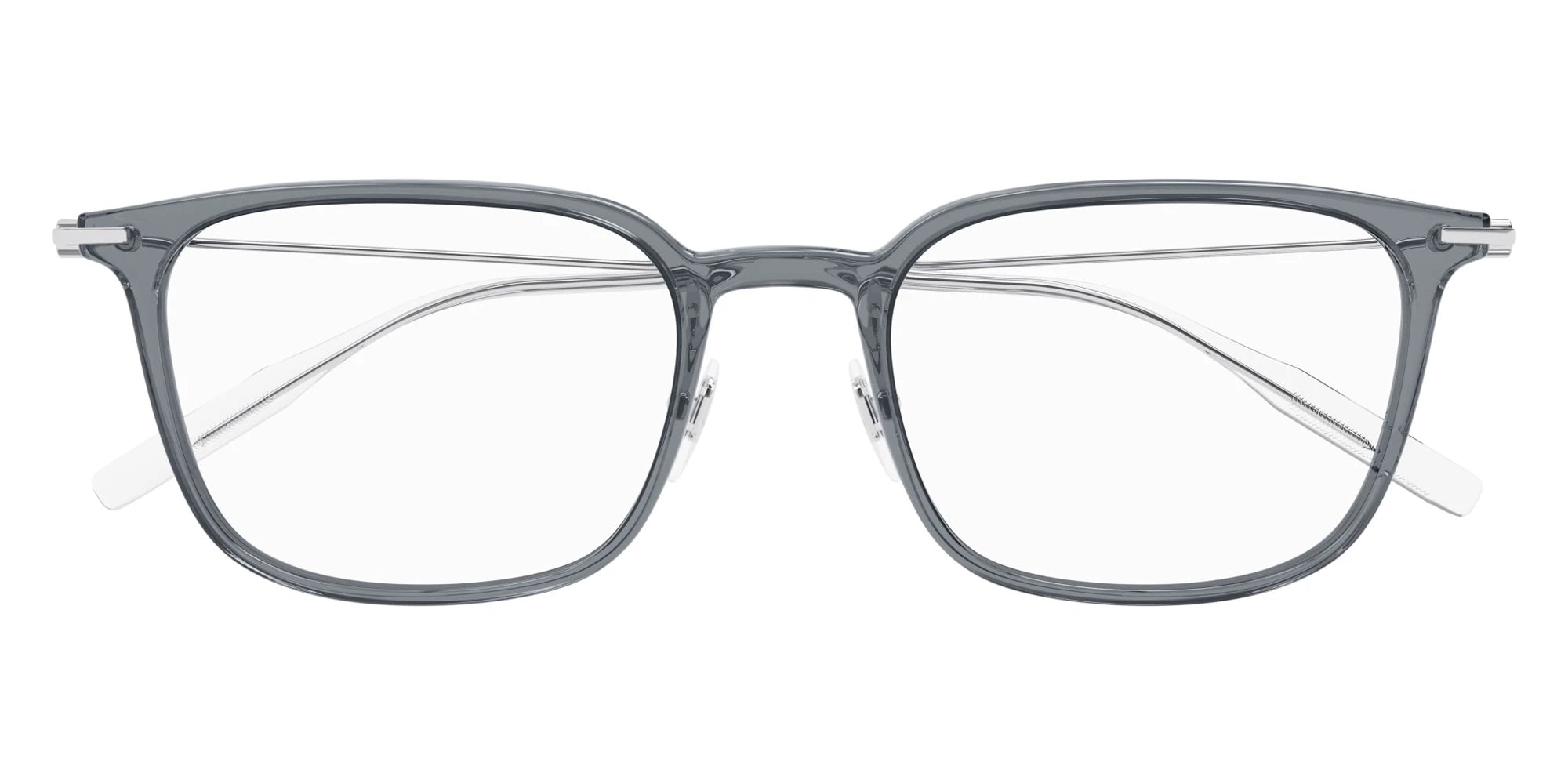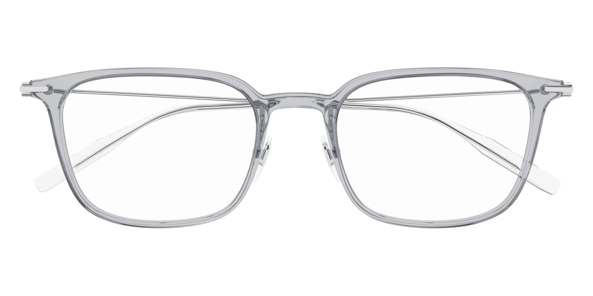 Gray/Silver (001) Eyeglasses (MB0100O 001 52) by Montblanc™. Size: 52-21-150, Shape: Rectangle, Material: Plastic and Metal.