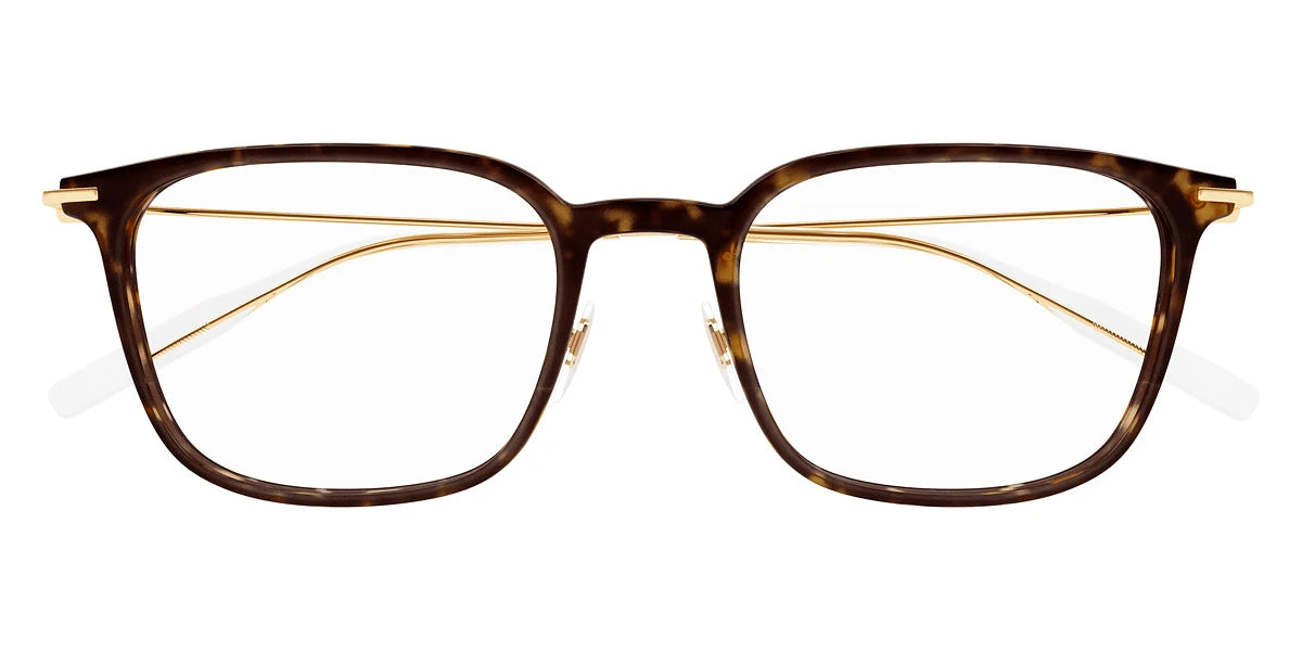 MB0100O Eyeglasses by Montblanc™. Shape: Rectangle, Material: Plastic and Metal, Frame Type: Full Rim. This model is available in three different color combinations and sizes. Montblanc is a European brand with a century of history. The brand's products are known as some of the best in the status accessories category. The brand began its activities back in 1906 and during this period the range of brand products has expanded significantly. Today, the Montblanc brand produces luxury watches, leather accessories, jewellery, eyeglass frames, and sophisticated perfumes. The brand has become the embodiment of traditional quality, sophistication of taste and an example of perfect execution. The finest quality and most modern materials: metal alloys, acetate, titanium and high-strength steel are used to create delightful collections.