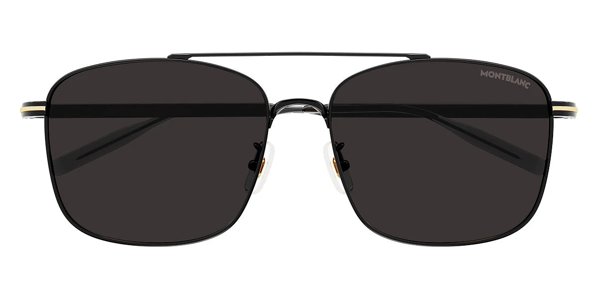 Black (001) Sunglasses with Gray lenses (MB0236SK 001 60) by Montblanc™. Size: 60-16-150, Shape: Aviator, Material: Metal.