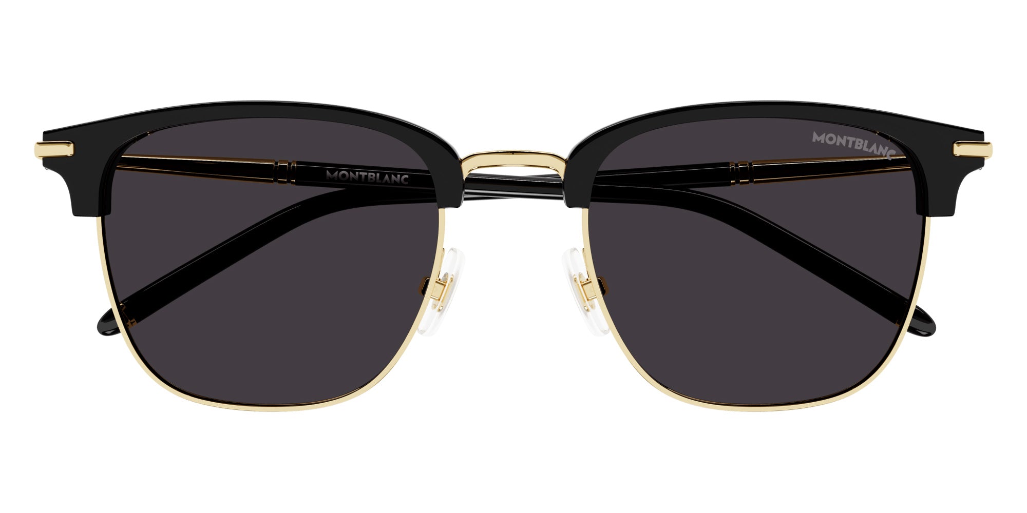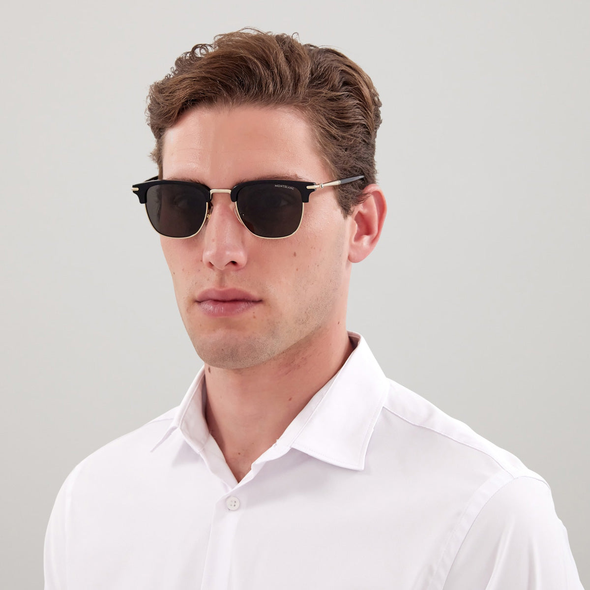 Black (002) Sunglasses (MB0242S 002 50) by Montblanc. Size: 50-22-145, Shape: Browline, Material: Recycled Acetate and Metal.