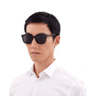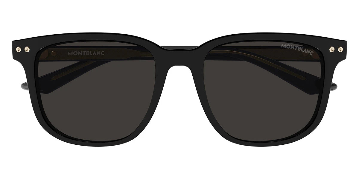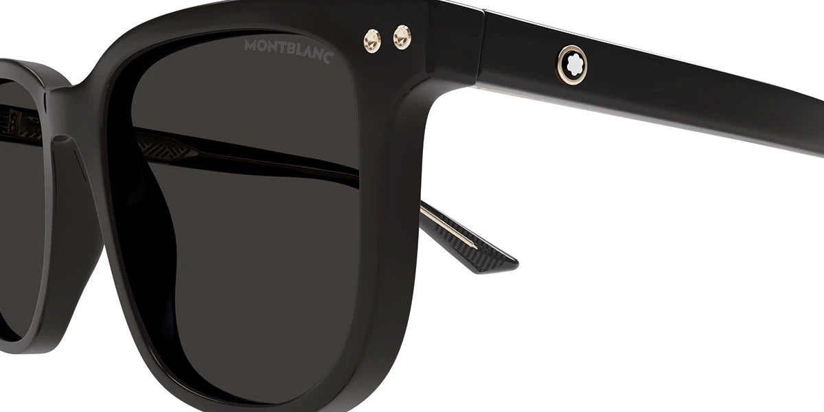 Black (001) Sunglasses with Smoke lenses (MB0258SA 001 55) by Montblanc™. Size: 55-19-145, Shape: Square, Material: Recycled Acetate.