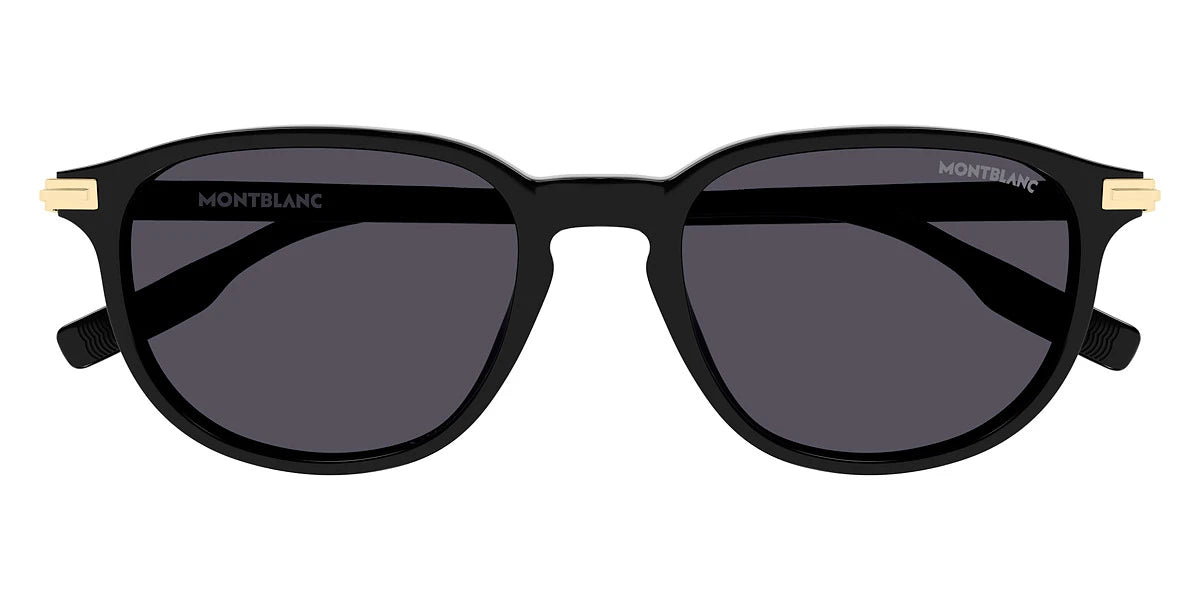 Black (001) Sunglasses with Smoke lenses (MB0276S 001 52) by Montblanc™. Size: 52-19-145, Shape: Wayfarer, Material: Recycled Acetate.