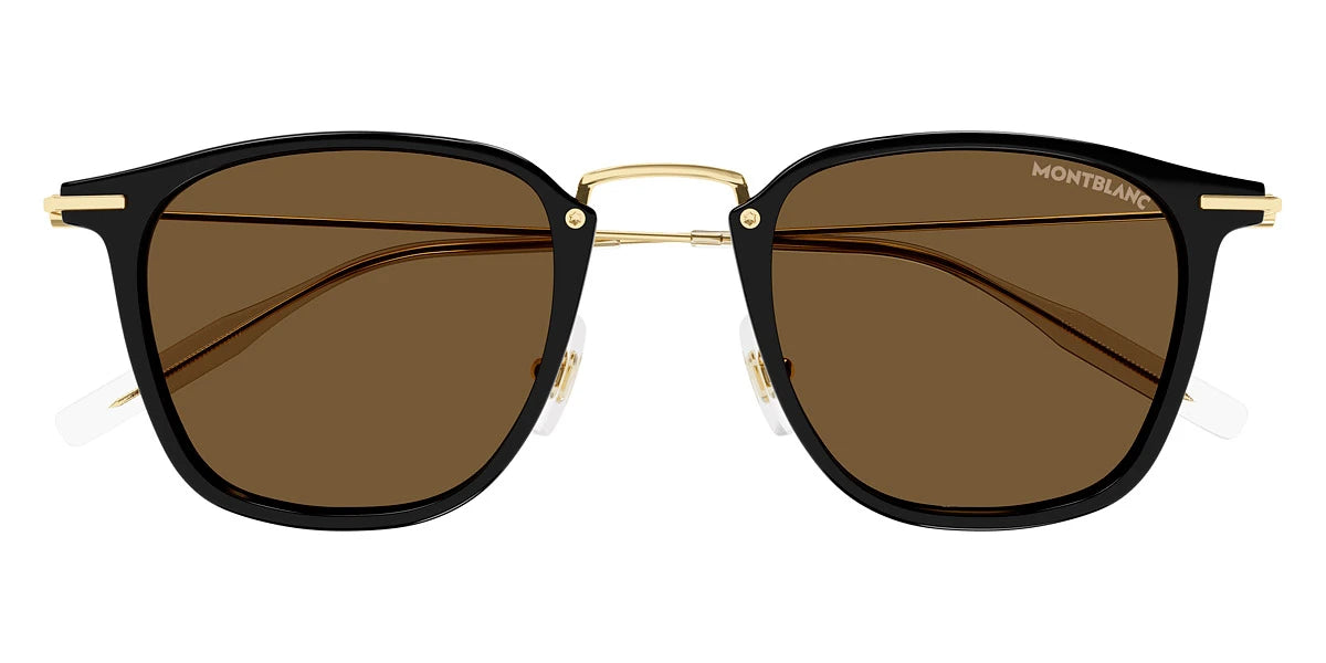 Black/Gold (001) Sunglasses with Brown lenses (MB0295S 001 49) by Montblanc™. Size: 49-23-145, Shape: Wayfarer, Material: Injection.
