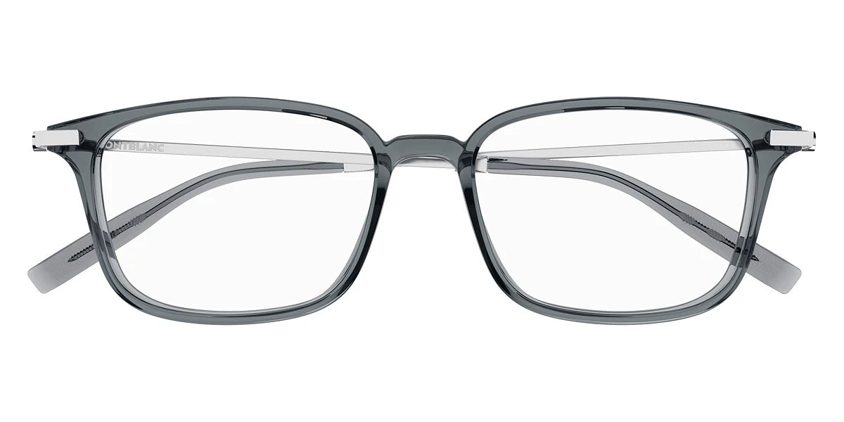 Gray/Silver (006) Eyeglasses (MB0315OA 006 56) by Montblanc™. Size: 56-17-150, Shape: Rectangle, Material: Recycled Acetate.