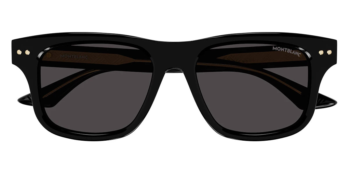 Black (001) Sunglasses with Gray lenses (MB0319S 001 55) by Montblanc™. Size: 55-18-150, Shape: Rectangle, Material: Recycled Acetate.