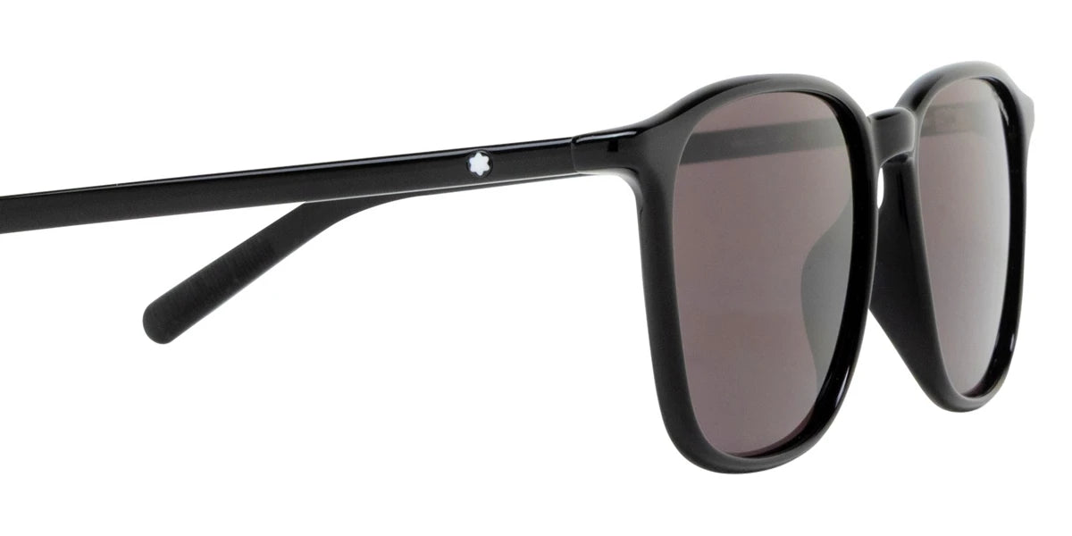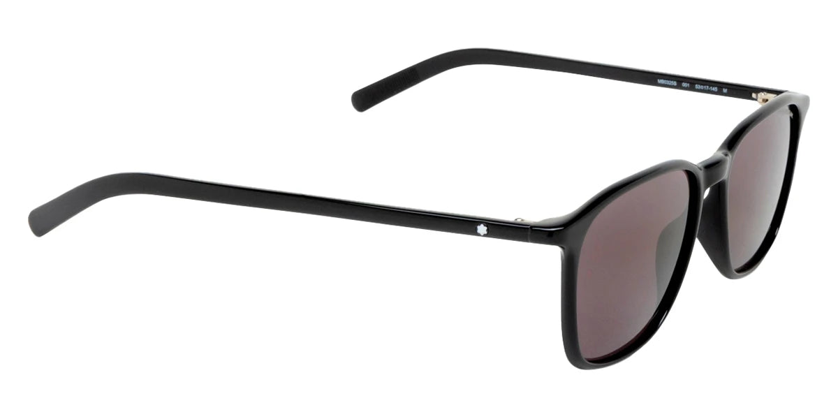 Black (001) Sunglasses with Gray lenses (MB0325S 001 53) by Montblanc™. Size: 53-17-145, Shape: Square, Material: Recycled Injected Acetate.