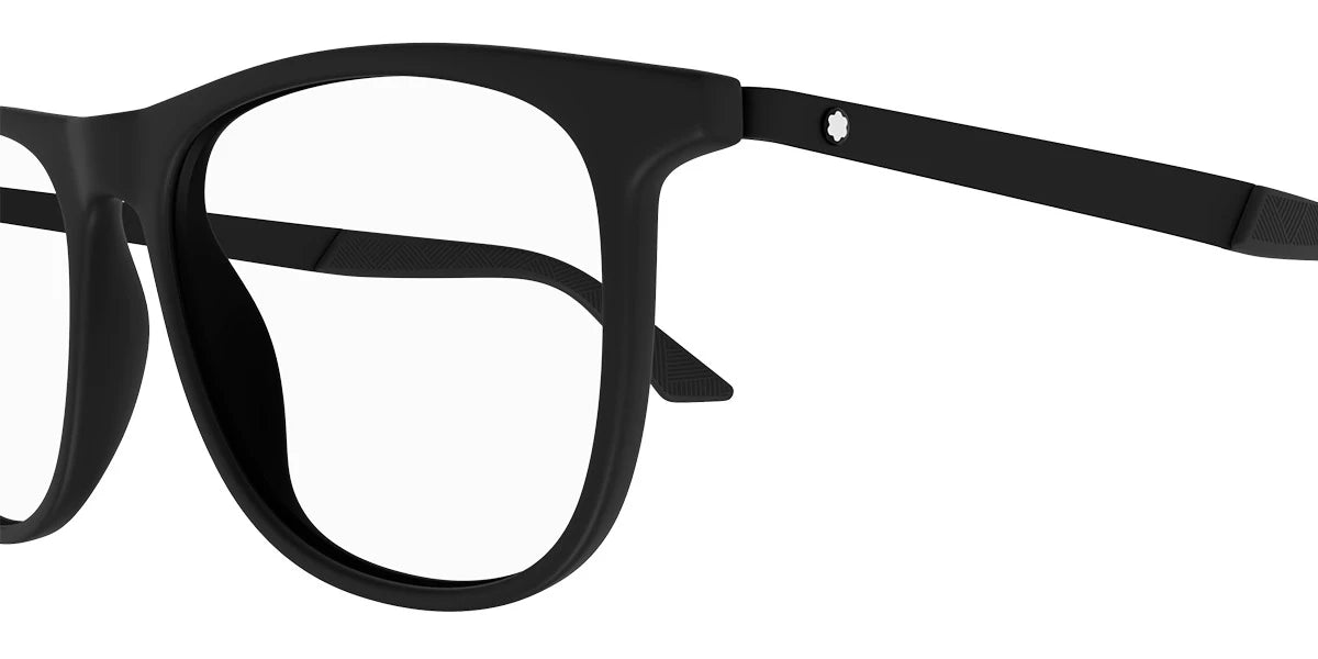 Black (001) Eyeglasses (MB0332O 001 55) by Montblanc™. Size: 55-17-150, Shape: Square, Material: Recycled Acetate.