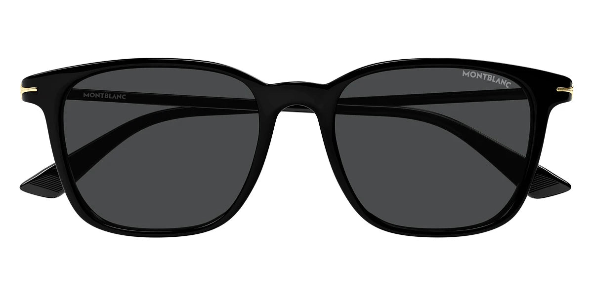 Black (001) Sunglasses with Smoke lenses (MB0338S 001 52) by Montblanc™. Size: 52-18-145, Shape: Square, Material: Recycled Acetate.