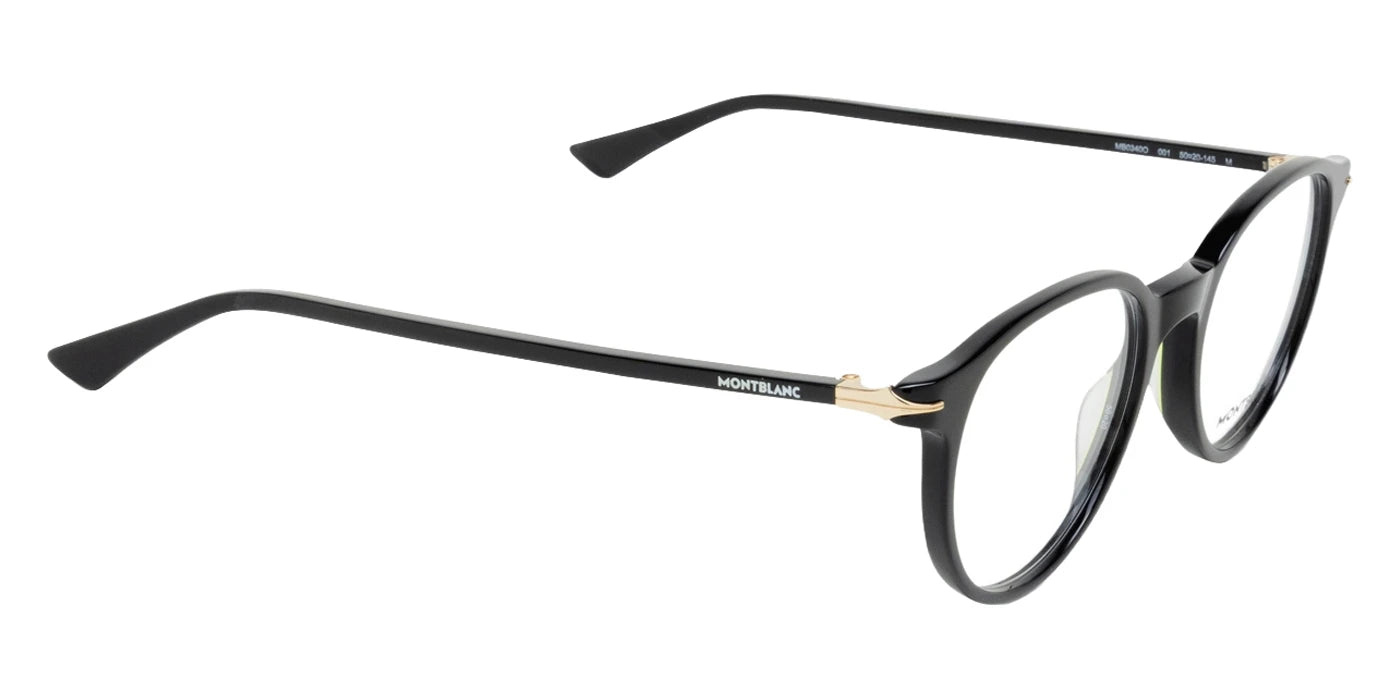 Black (003) Eyeglasses (MB0340O 003 50) by Montblanc™. Size: 50-20-145, Shape: Round, Material: Recycled Acetate.