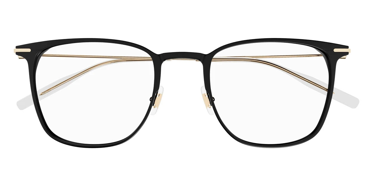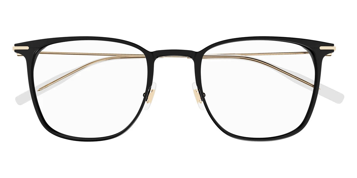 Black/Gold (006) Eyeglasses (MB0356O 006 53) by Montblanc™. Size: 53-21-145, Shape: Square, Material: Aluminium and Metal.