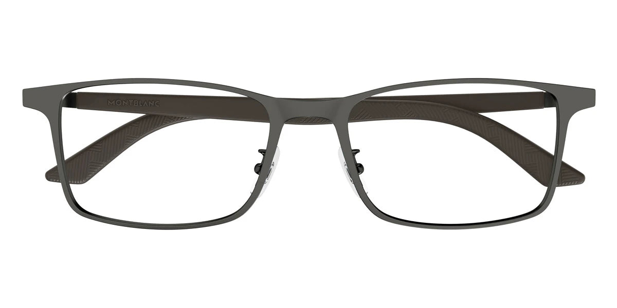 Gunmetal/Blue (005) Eyeglasses (MB0361O 005 54) by Montblanc™. Size: 54-19-145, Shape: Wayfarer, Material: Metal and Rubber.