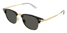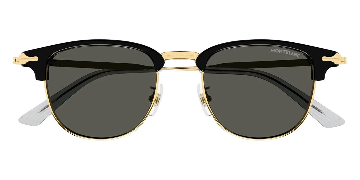 Black/Gold (001) Sunglasses with Gray lenses (MB0364S 001 49) by Montblanc™. Size: 49-19-150, Shape: Browline, Material: Metal and Recycled Acetate.