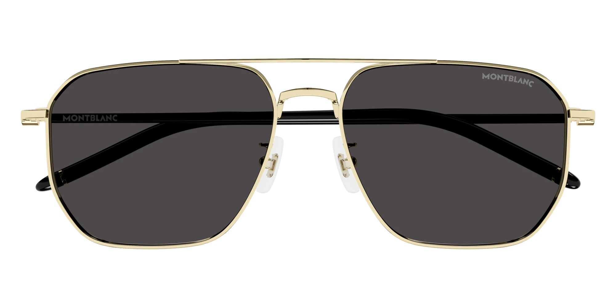 Gold/Black (001) Sunglasses with Gray lenses (MB0367SA 001 60) by Montblanc™. Size: 60-16-145, Shape: Aviator, Material: Metal and Injection.