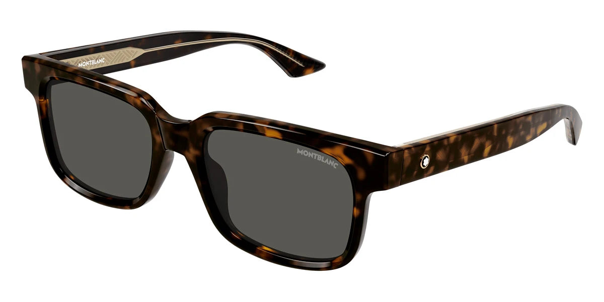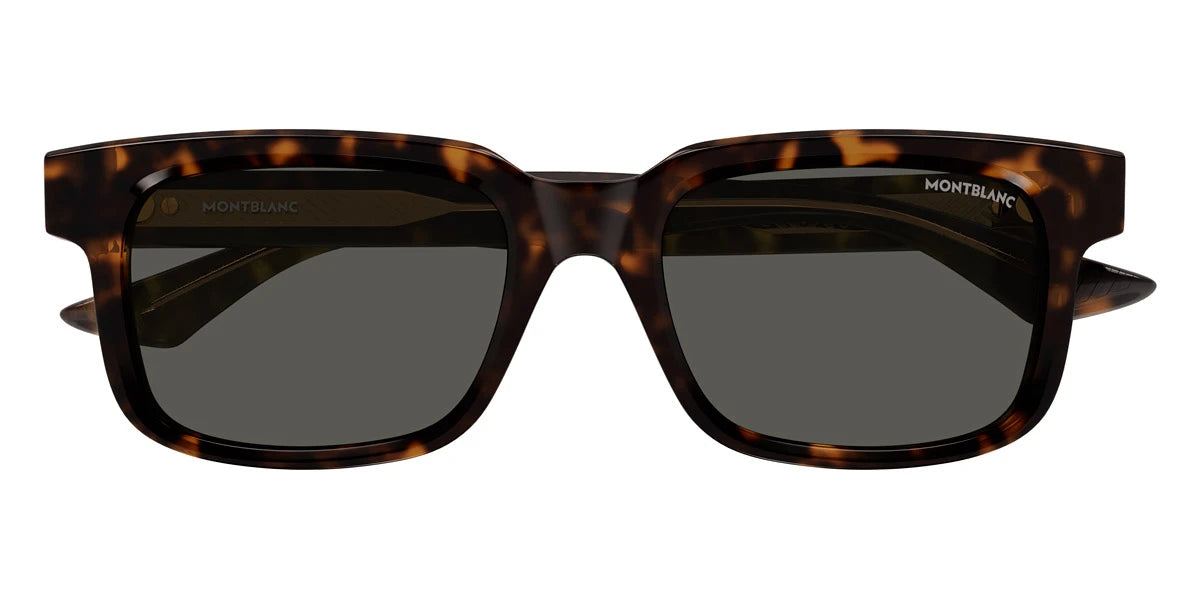 Havana (002) Sunglasses with Gray lenses (MB0383S 002 54) by Montblanc™. Size: 54-19-150, Shape: Rectangle, Material: Recycled Acetate.