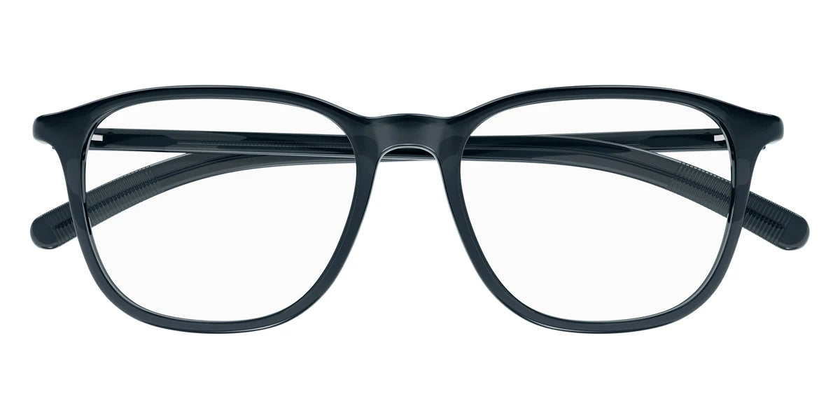 Gray (002) Eyeglasses (MB0386O 002 52) by Montblanc™. Size: 52-17-145, Shape: Square, Material: Recycled Injected Acetate.