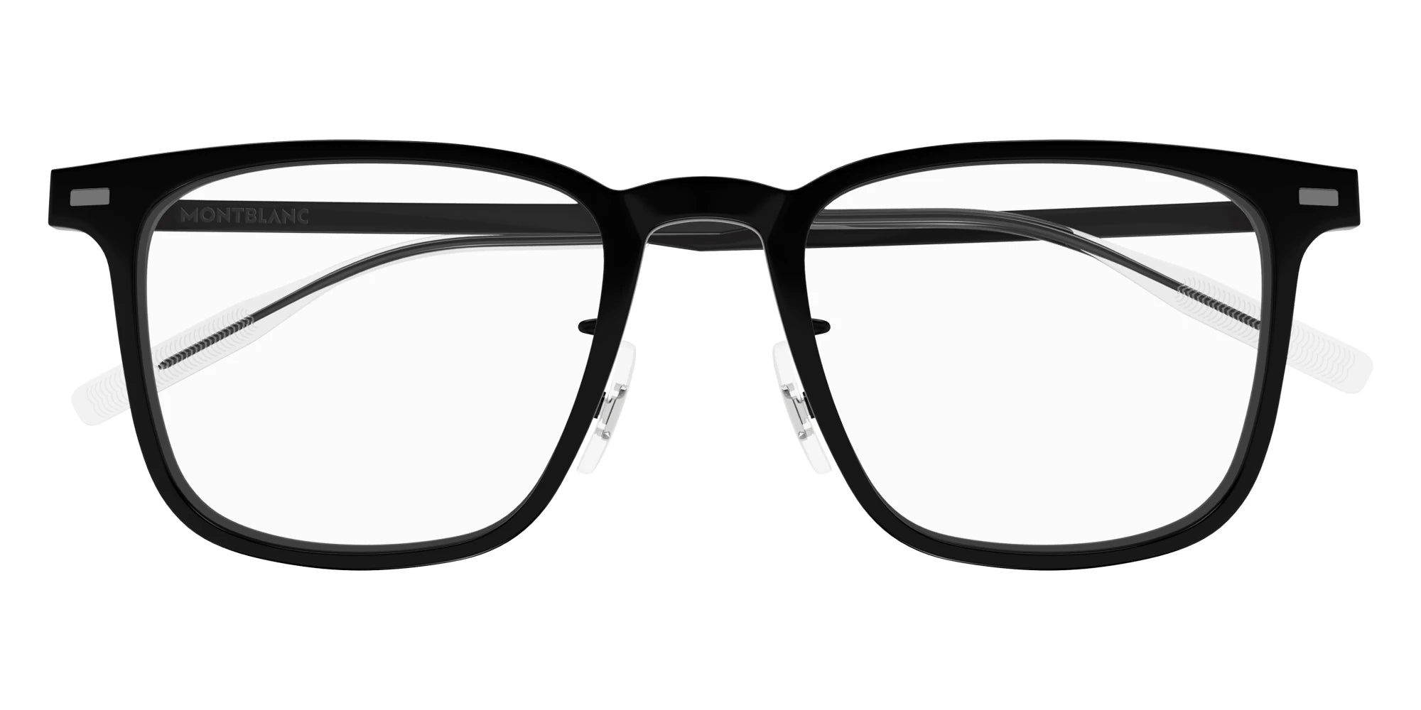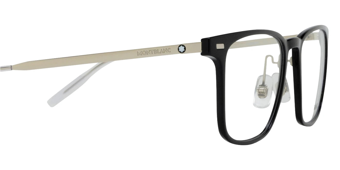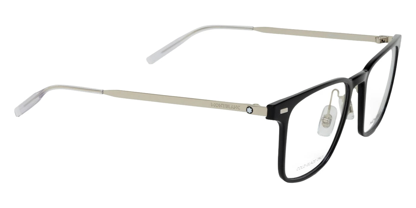 Black/Silver (001) Eyeglasses (MB0395ON 001 51) by Montblanc™. Size: 51-19-145, Shape: Square, Material: Injection and Metal.