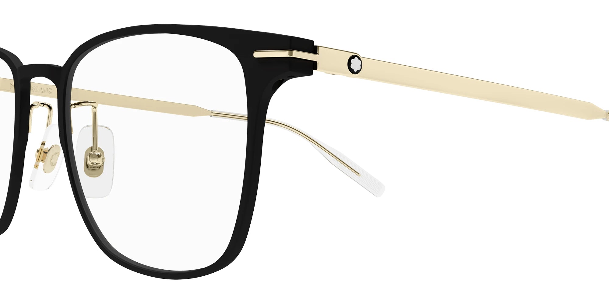 Black/Gold (001) Eyeglasses (MB0397ON 001 52) by Montblanc™. Size: 52-20-145, Shape: Square, Material: Aluminium and Metal.