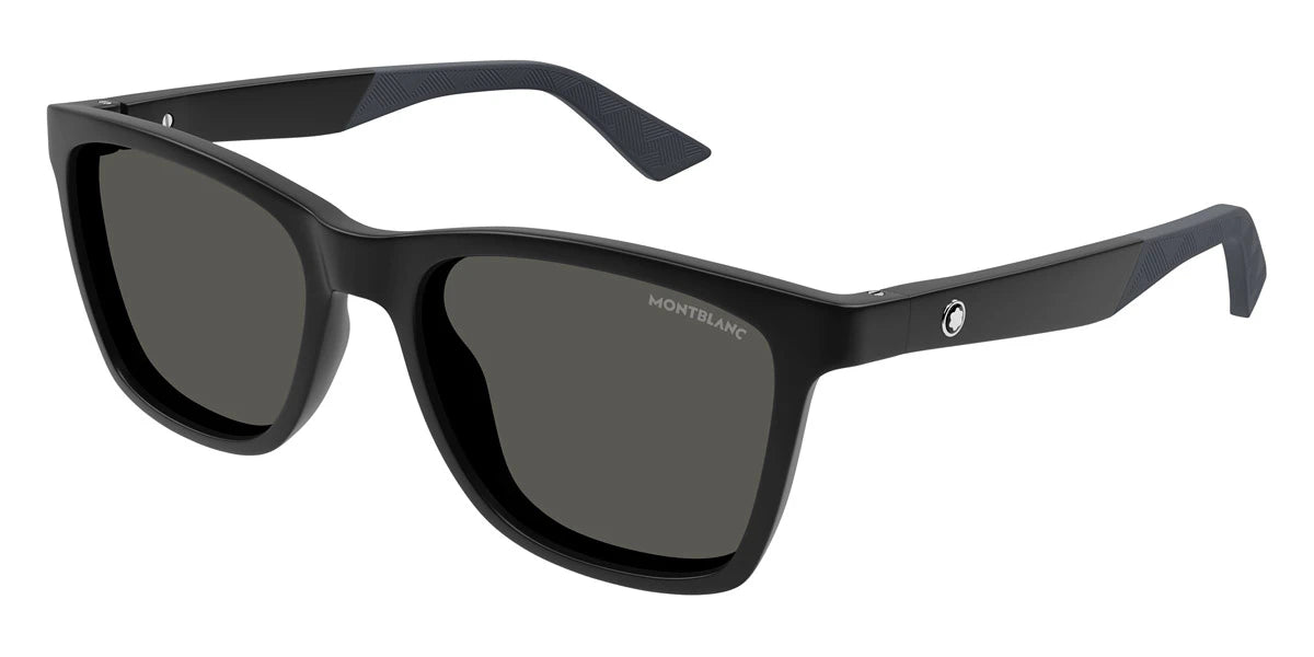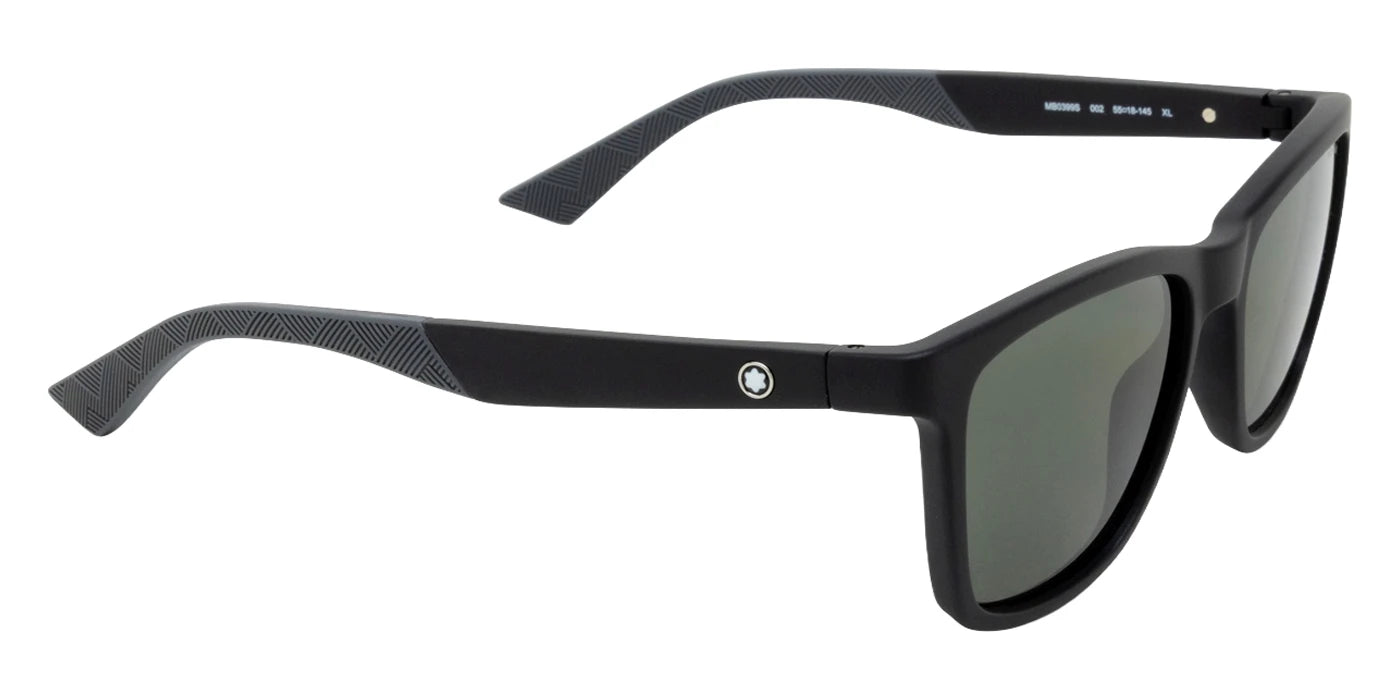 Black (002) Sunglasses with Gray lenses (MB0399S 002 55) by Montblanc™. Size: 55-18-145, Shape: Square, Material: Injection.