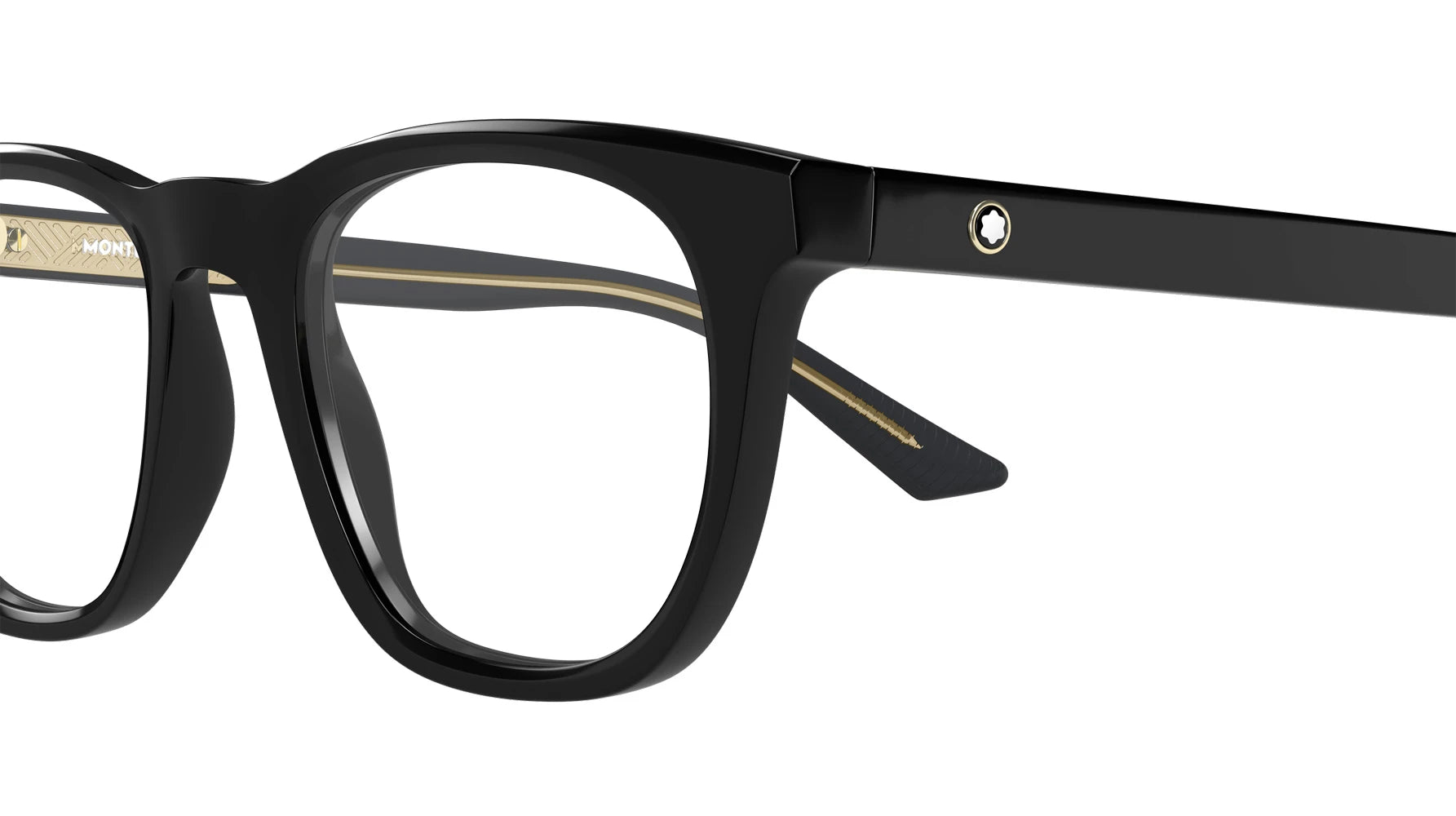 Black (001) Eyeglasses (MB0422O 001 51) by Montblanc™. Size: 51-21-150, Shape: Square, Material: Recycled Acetate.