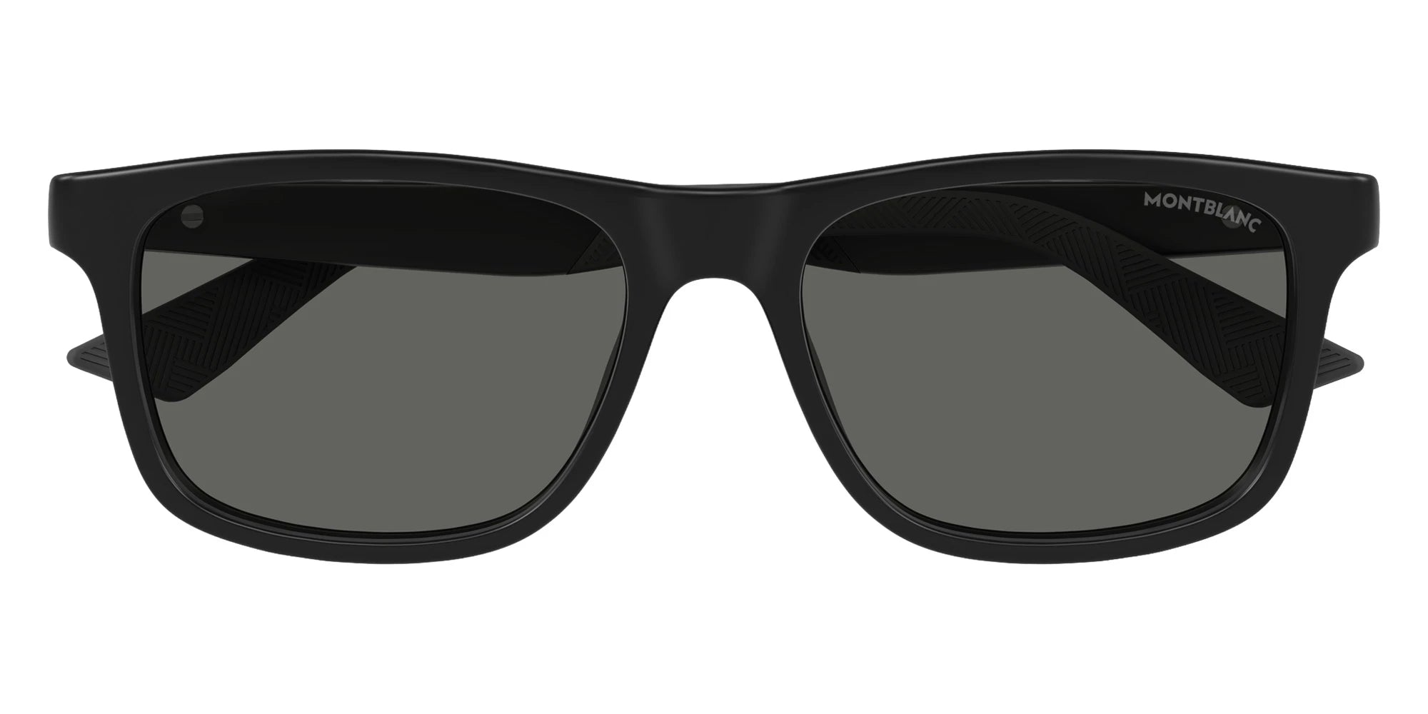 Black (002) Sunglasses with Smoke Polarized lenses (MB0432S 002 55) by Montblanc™. Size: 55-17-145, Shape: Rectangle, Material: Injection.