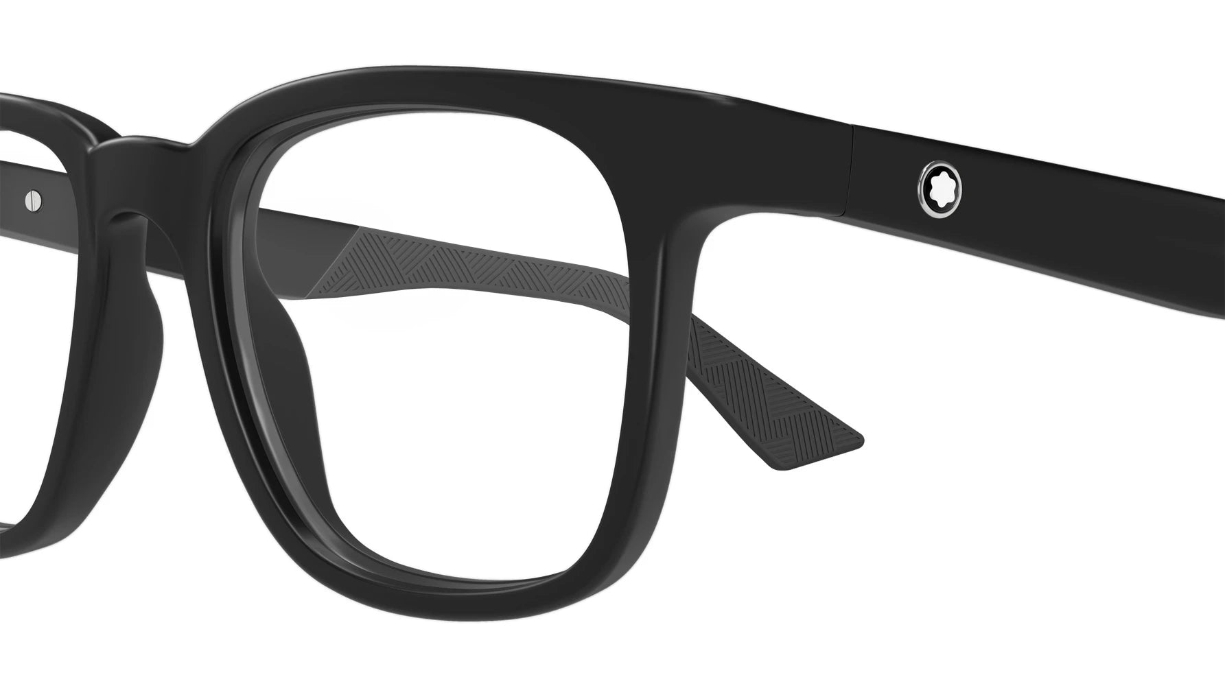Black (002) Eyeglasses (MB0433O 002 51) by Montblanc™. Size: 51-20-145, Shape: Square, Material: Injection.