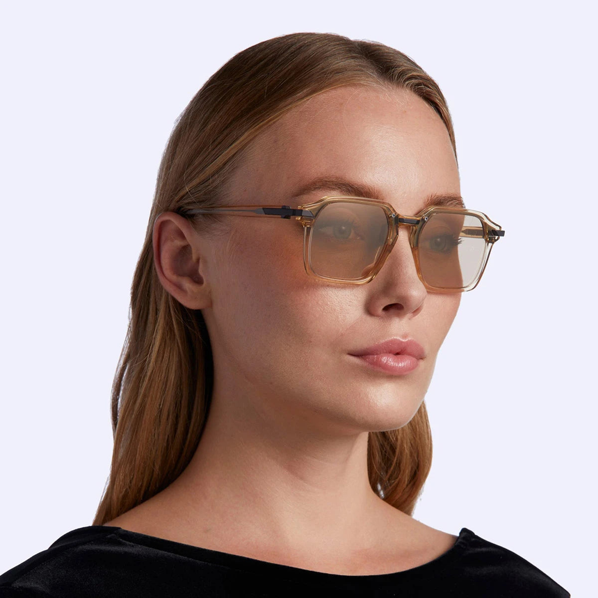 AC 02 Sunglasses by Movitra™. The square shape design feature a full rim acetate frame. This model is available in two different color combinations and sizes. Born from the heart of Italy's timeless tradition of artisanal excellence, Movitra has emerged as a beacon of sophistication, blending centuries-old techniques with cutting-edge innovation to create eyewear that transcends mere function and becomes a true work of art. The brand's story is a captivating tale, woven through the fabric of Italian culture itself. Movitra's origins can be traced back to the Renaissance era, when Italian artisans revolutionized the art of eyewear making, infusing their creations with an unparalleled level of detail and precision. This legacy has been carefully preserved and passed down through generations, with each pair of Movitra eyewear serving as a testament to the enduring spirit of Italian craftsmanship. What sets Movitra apart, however, is its ability to seamlessly marry tradition with modernity. Embracing the tagline "Two Souls. One Brand," Movitra masterfully fuses the essence of "Made In Italy" with a forward-thinking approach to design and technology. This harmonious coexistence of heritage and innovation is evident in every aspect of Movitra's creations, from the meticulously handcrafted frames to the incorporation of cutting-edge materials and advanced optical technology.